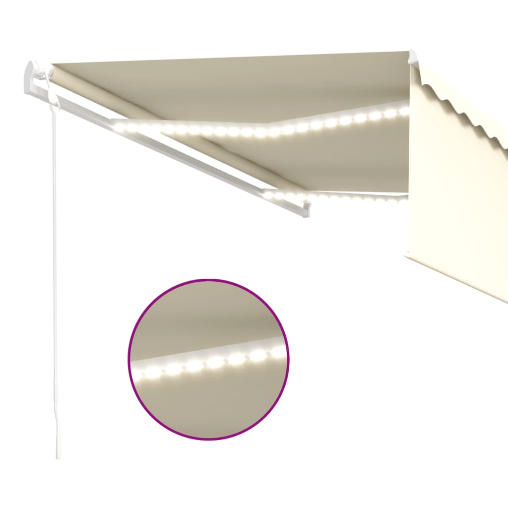 krémszínű szélérzékelős, LED-es napellenző redőnnyel 4x3 m