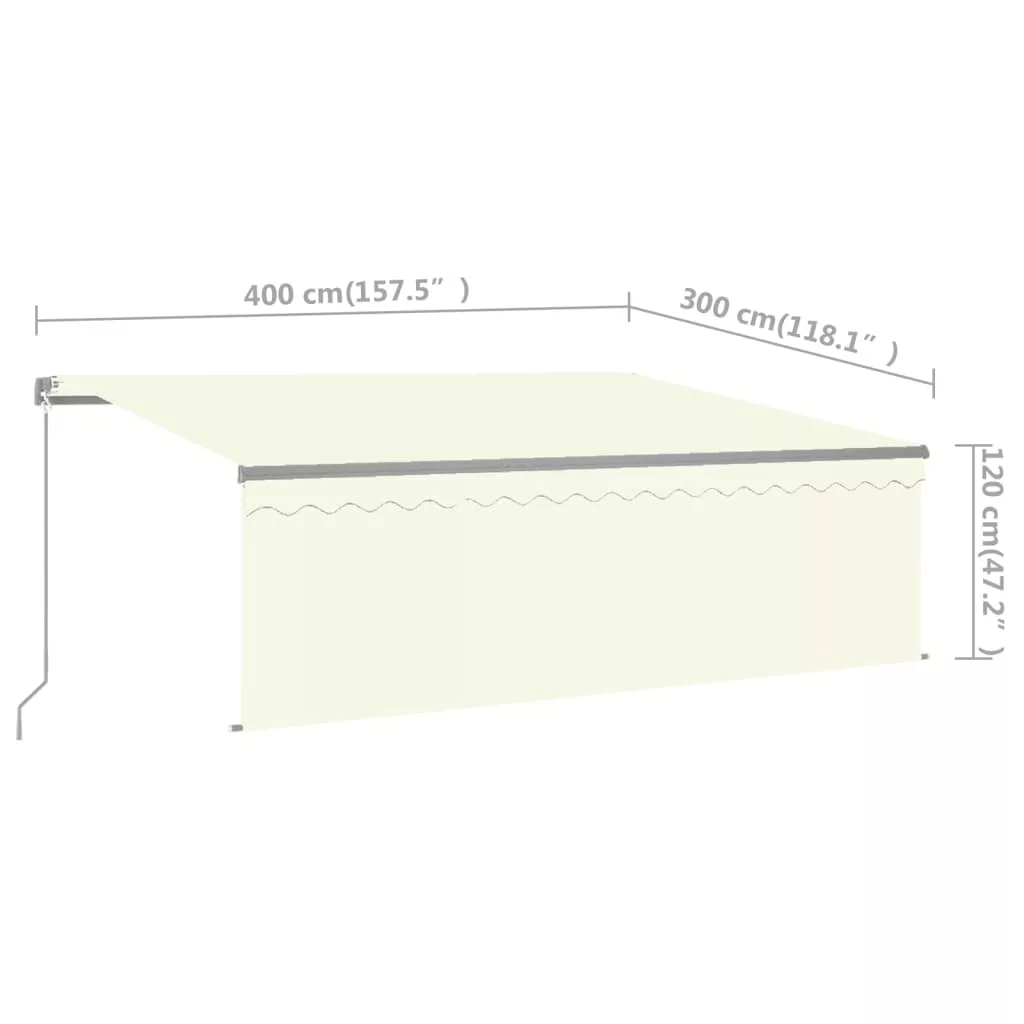 krémszínű LED-es kézzel kihúzható napellenző redőnnyel 4 x 3 m