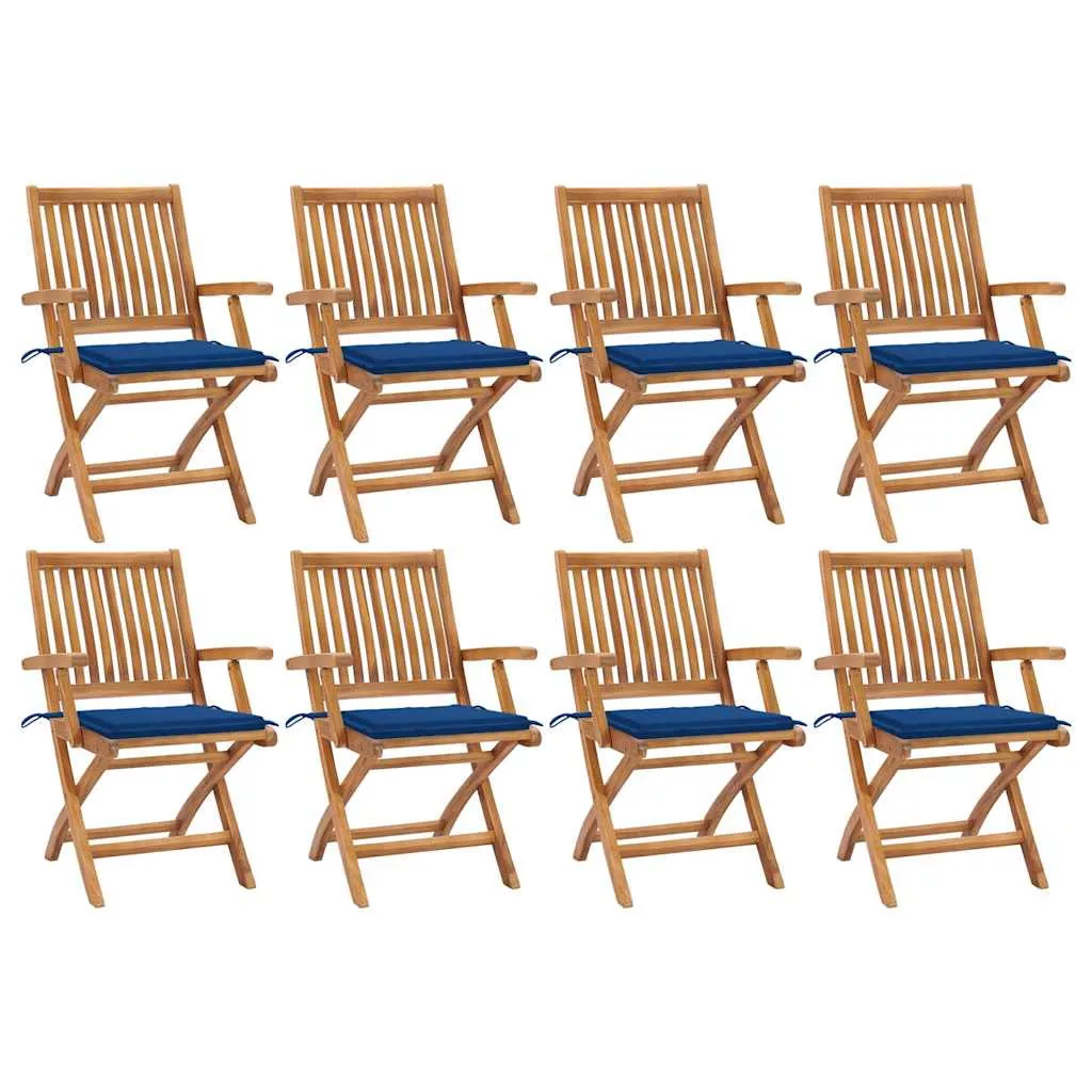 8 db összecsukható tömör tíkfa kerti szék párnával
