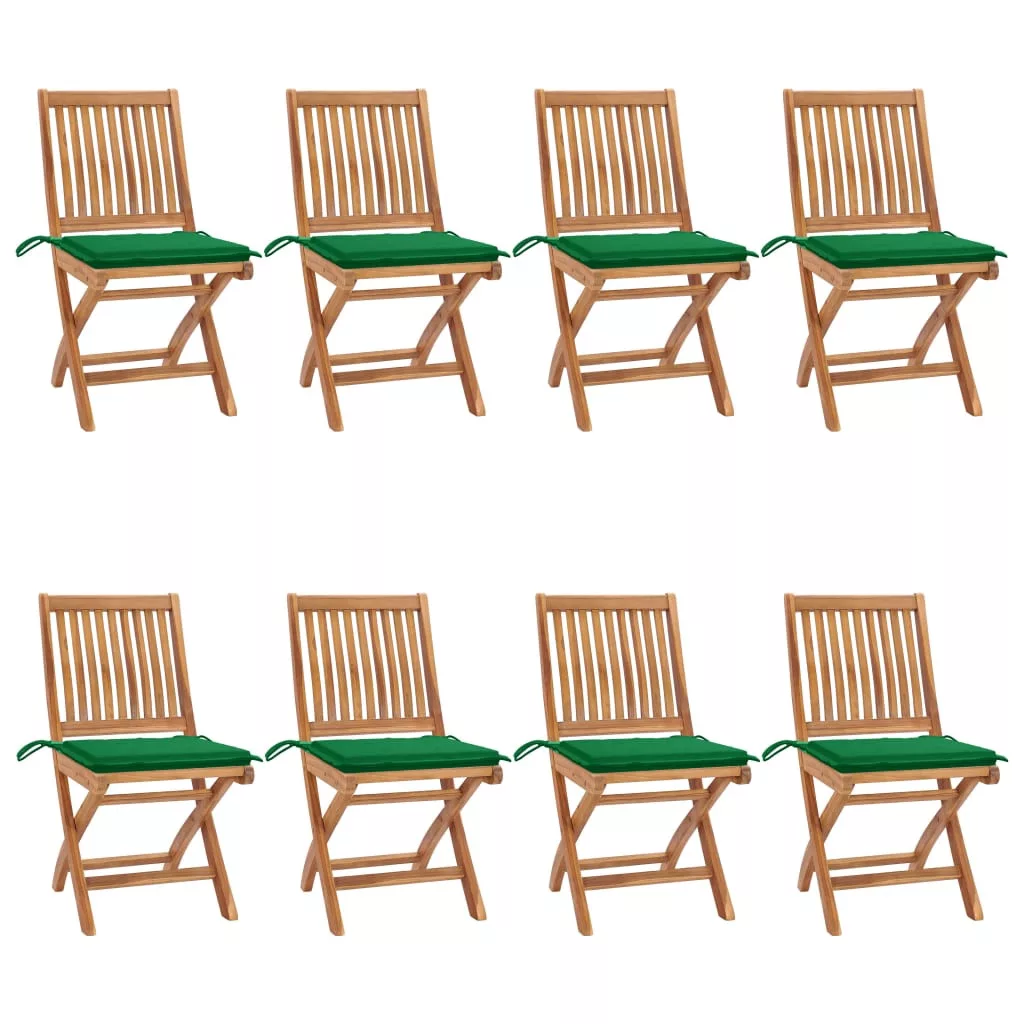8 db összecsukható tömör tíkfa kerti szék párnával