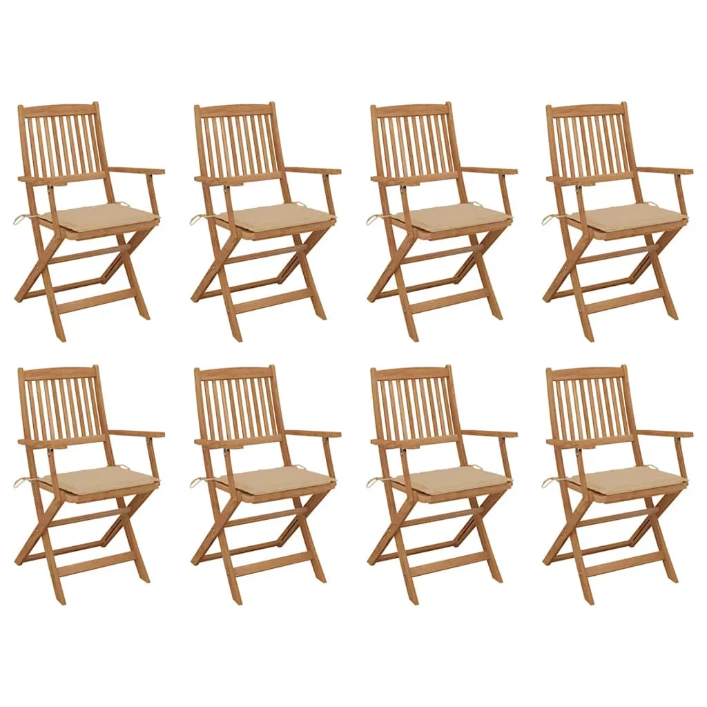 8 db összecsukható tömör akácfa kerti szék párnákkal