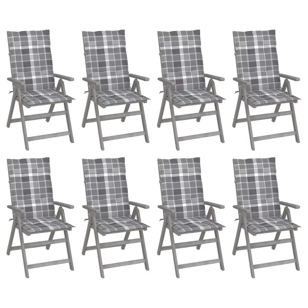 8 db szürke tömör akácfa kerti dönthető szék párnával