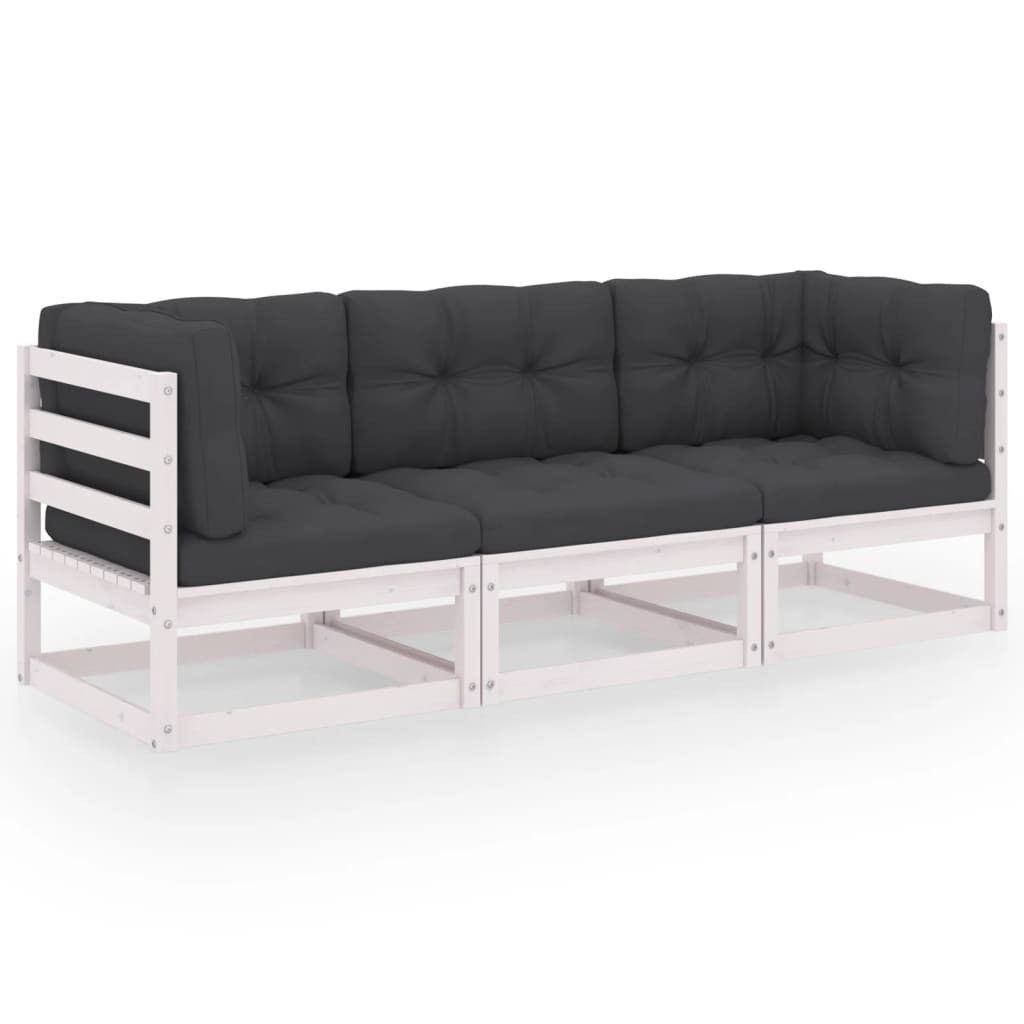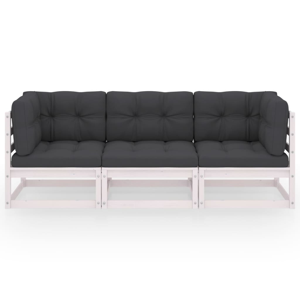 háromszemélyes tömör fenyőfa kerti kanapé párnákkal
