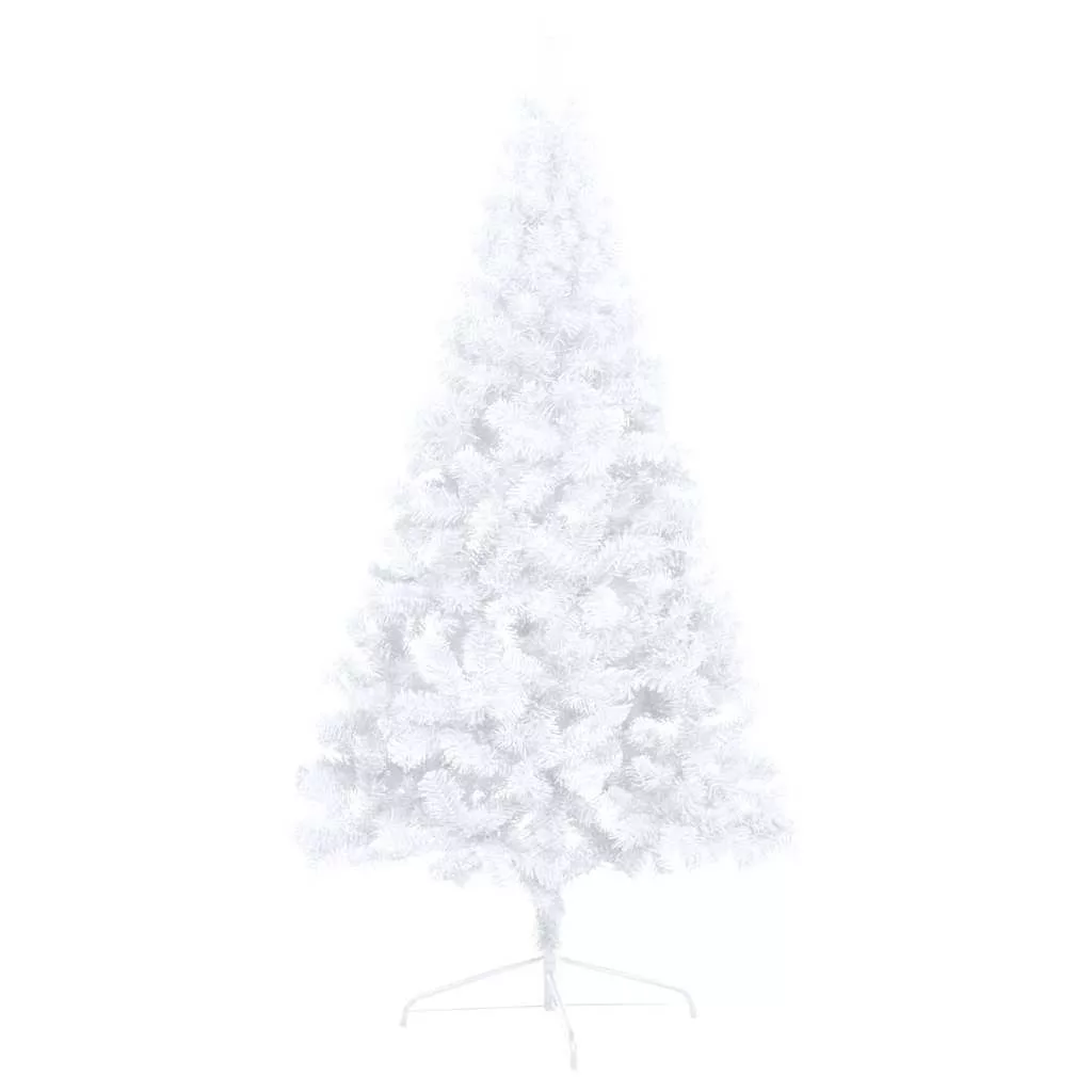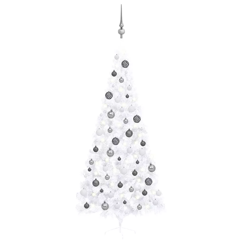 fehér megvilágított fél műkarácsonyfa gömb szettel 240 cm