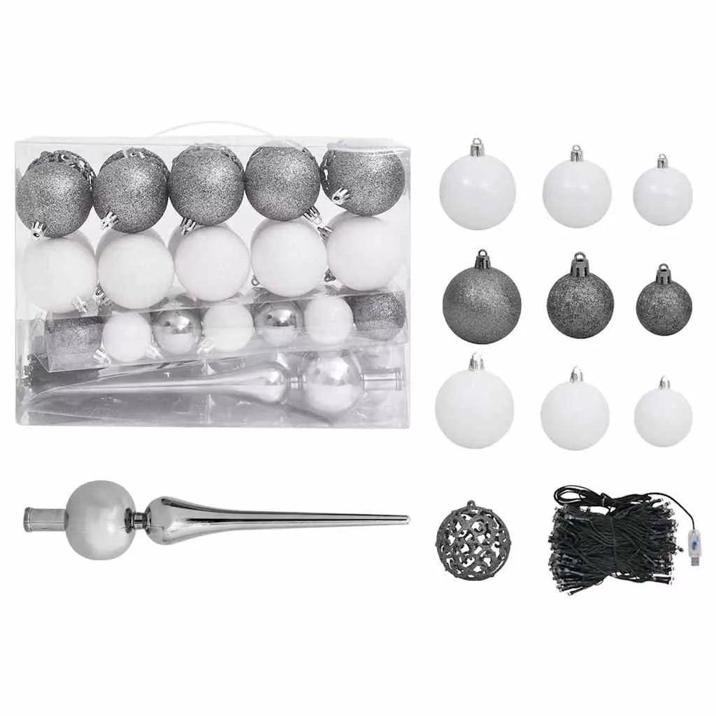 Gömbök színe: fényes fehér, csillogó fehér, fényes szürke és csillogó szürke