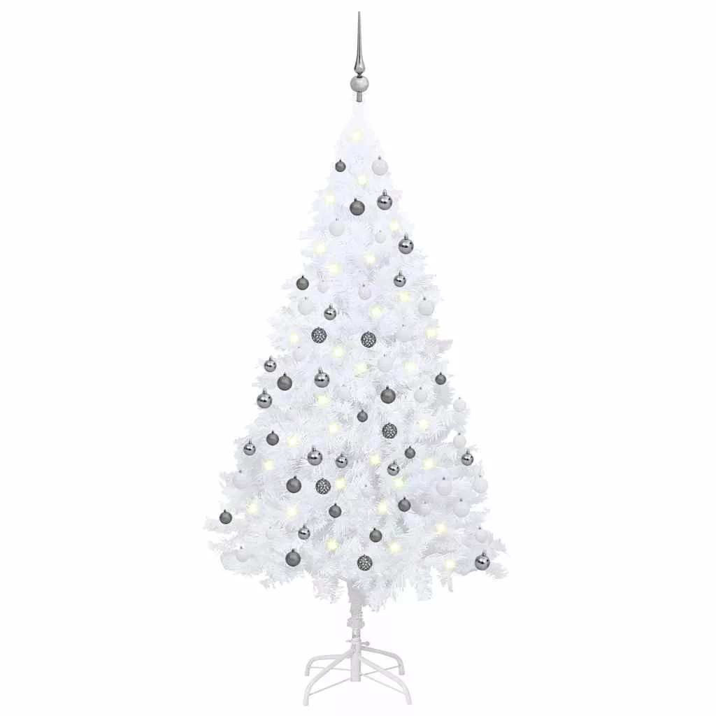 fehér PVC megvilágított műkarácsonyfa gömb szettel 120 cm