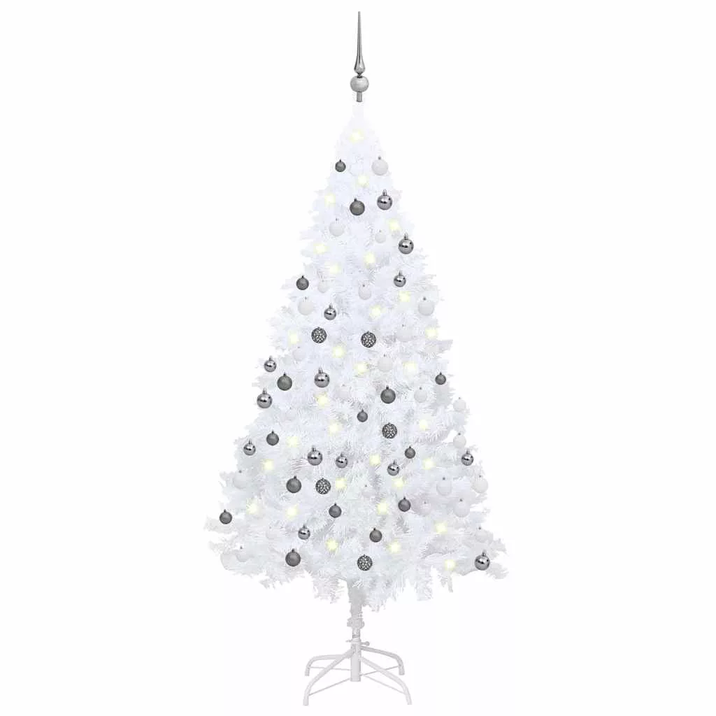 fehér PVC megvilágított műkarácsonyfa gömb szettel 150 cm