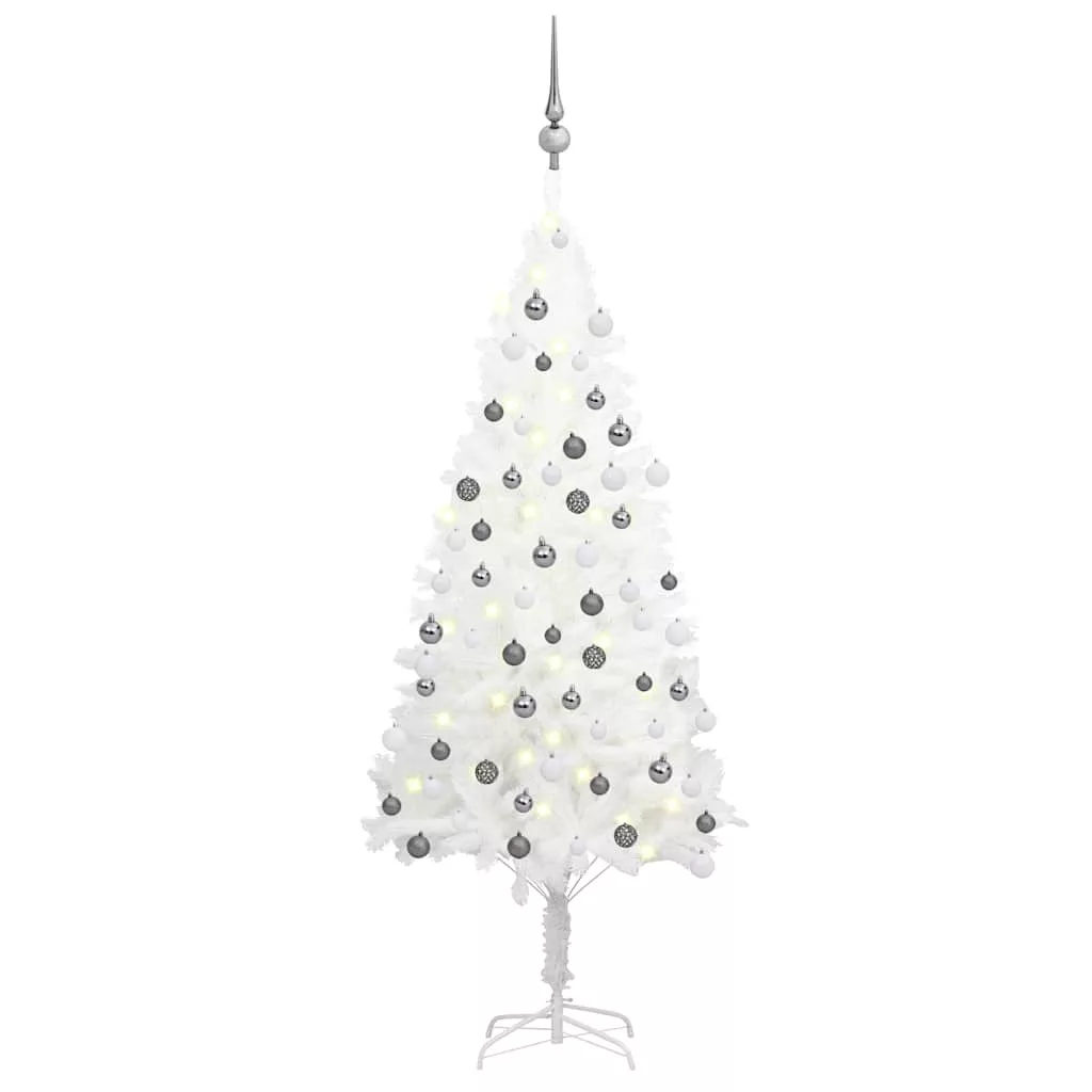 fehér megvilágított műkarácsonyfa gömb szettel 120 cm