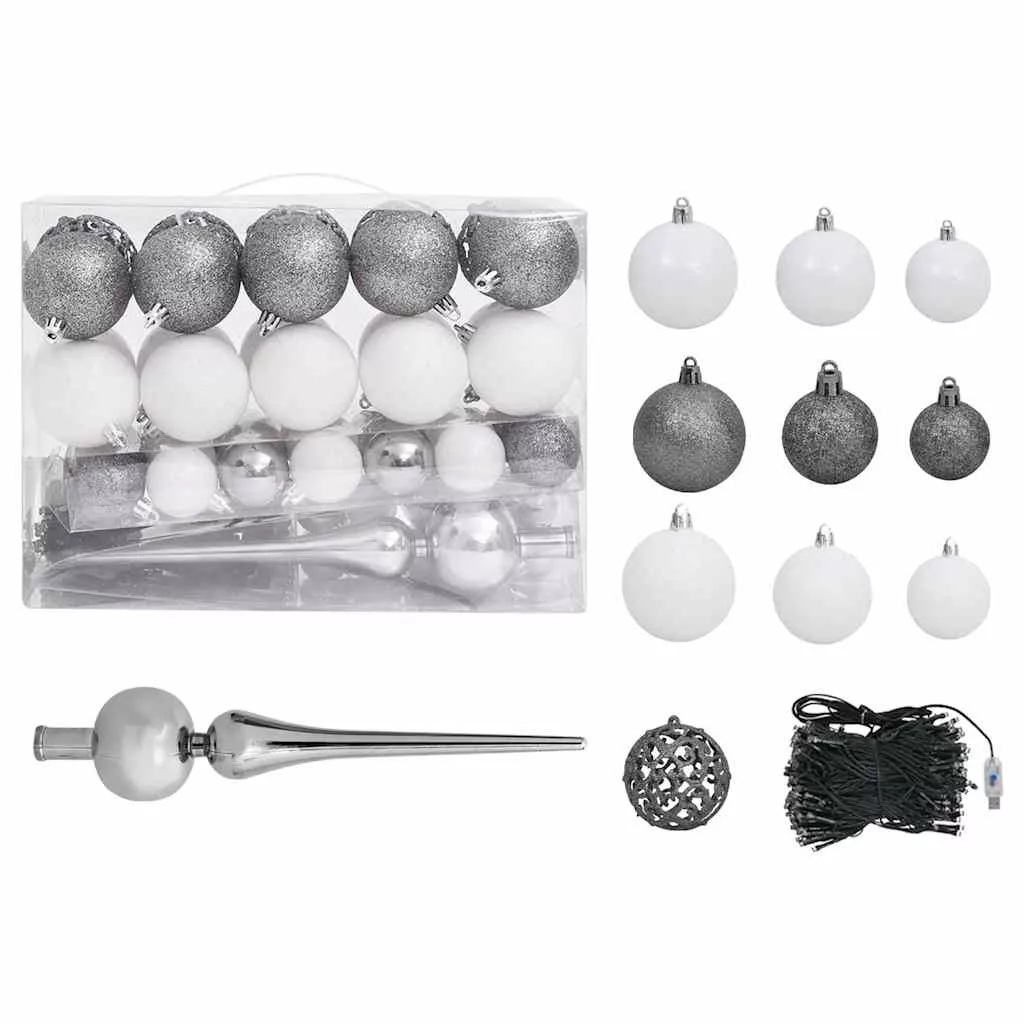 Ez a gyönyörű műkarácsonyfa mind formájában és megjelenésében is rendkívül élethű, és megfelelő hangulatot teremt a közelgő karácsonyhoz. A valósághű fa élethű tűlevél alakú PE ágakkal rendelkezik, amelyek fröccsöntéssel készülnek. Könnyű, időjárásálló és tartós. Ez a gyönyörű karácsonyfa vízálló. A tűágak bármilyen alakban elrendezhetők. A karácsonyfa minden évben használható, így nagyon gazdaságos választás egy valódi fához képest. A stabilitás érdekében acél alappal is rendelkezik. Az energiahatékony LED világításnak köszönhetően csodálatos fényeket és otthonos ünnepi hangulatot teremt. Sőt, a gyönyörű csúcsokkal és gömbökkel díszített karácsonyfa szemet gyönyörködtető lesz otthonában. Dobja fel az ünnepek hangulatát ezzel a pompás karácsonyfával! Megjegyzés: A termék USB-csatlakozóval rendelkezik, ám a hitelesített 5 V-os USB áramforrást a csomag nem tartalmazza.