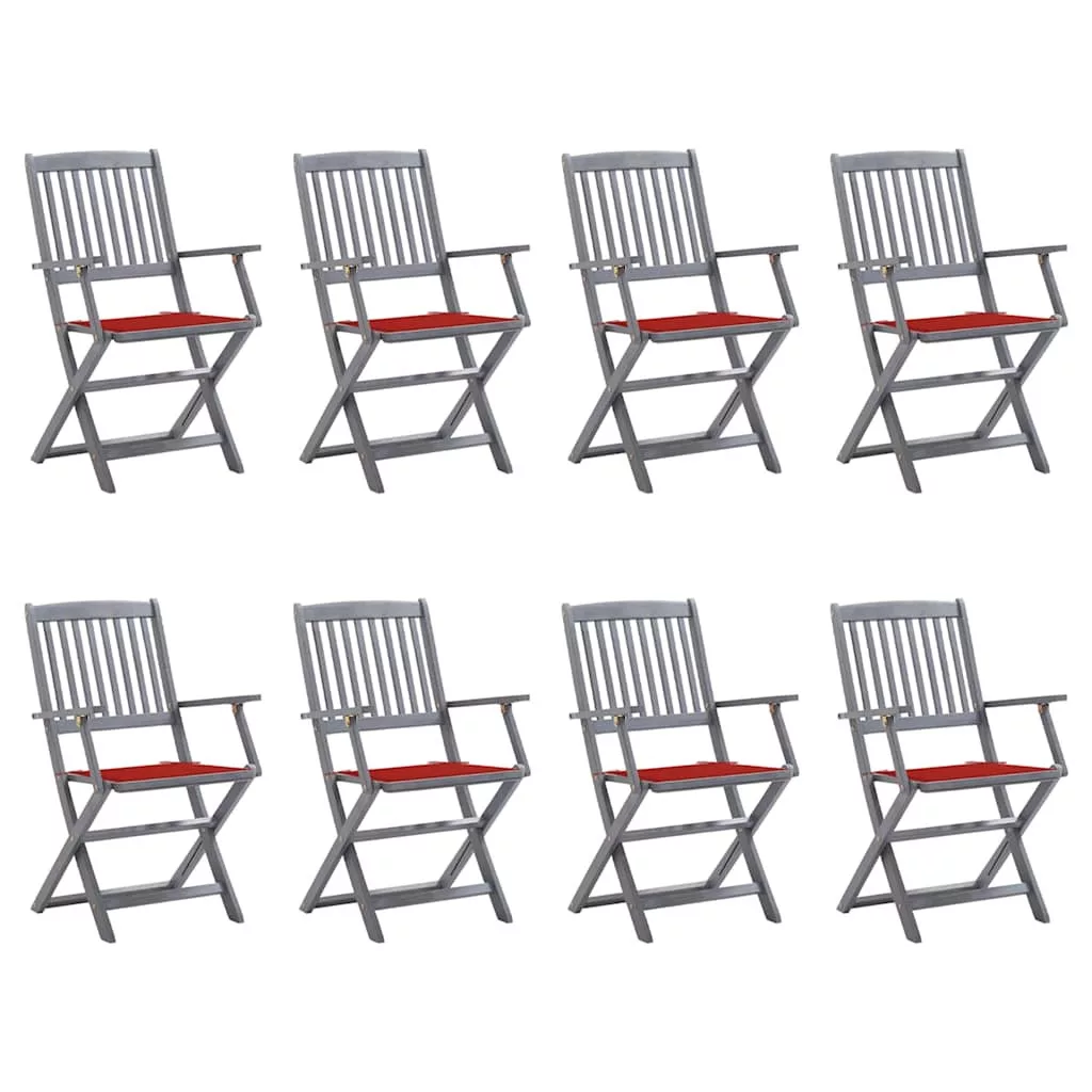 8 db összecsukható tömör akácfa kerti szék párnákkal