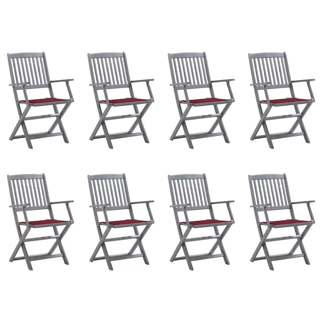8 db összecsukható tömör akácfa kerti szék párnákkal