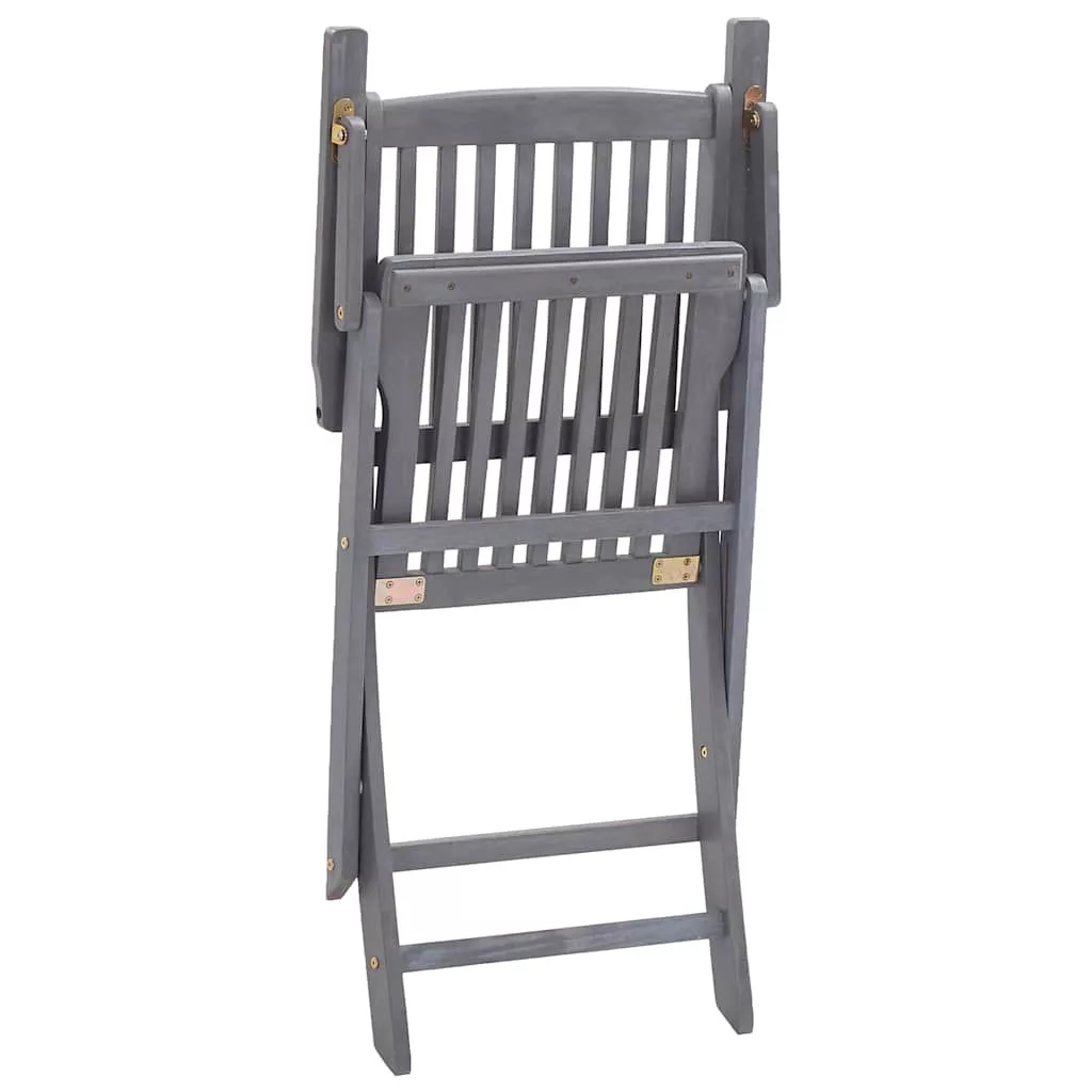 Modern stílusú, párnás fa étkezőszékszettünk természetes stílust csempész a kertjébe, teraszára vagy verandájára. Ez az összecsukható székgarnitúra nagyszerű választás étkezésekhez. Ezek az étkezőszékek tömör akácfából, egy trópusi keményfából készültek, így időjárásállóak és évekig használhatóak. A tömör akácfa nem csupán erős, elbírva a ránehezedő súlyt, de ellenáll a kopásnak is. Az antikolt szürke felület nedves ruhával könnyen tisztítható. A székek a helytakarékosság érdekében használaton kívül összecsukhatóak. A mellékelt párnák további kényelmet nyújtanak pihenés vagy étkezés közben. A párnák mindegyike két fűzővel lett ellátva, amivel a székhez rögzíthetőek. Megjegyzés: Kültéri bútora élettartamának meghosszabbítása érdekében javasoljuk, hogy védje vízálló huzattal. Maximum 110 kg ülésenként.