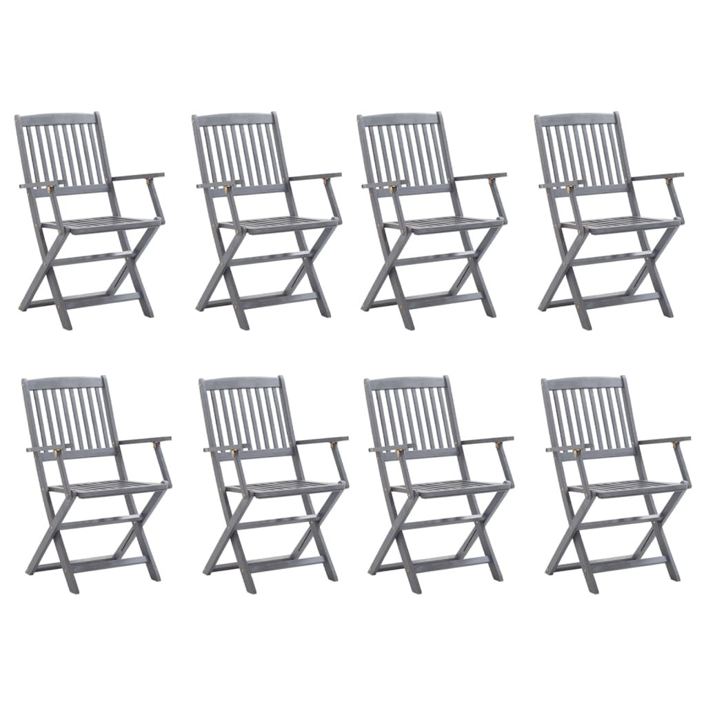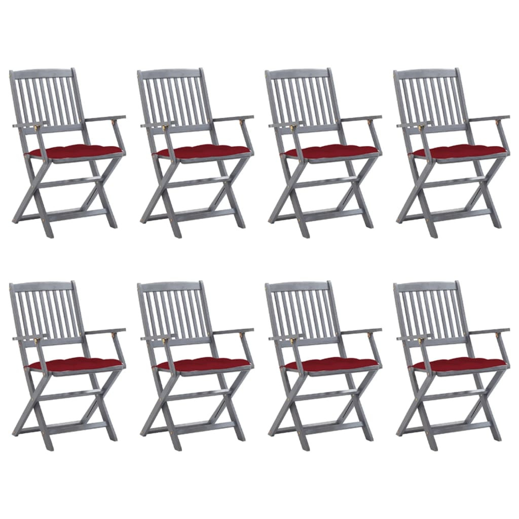 8 db összecsukható tömör akácfa kerti szék párnákkal