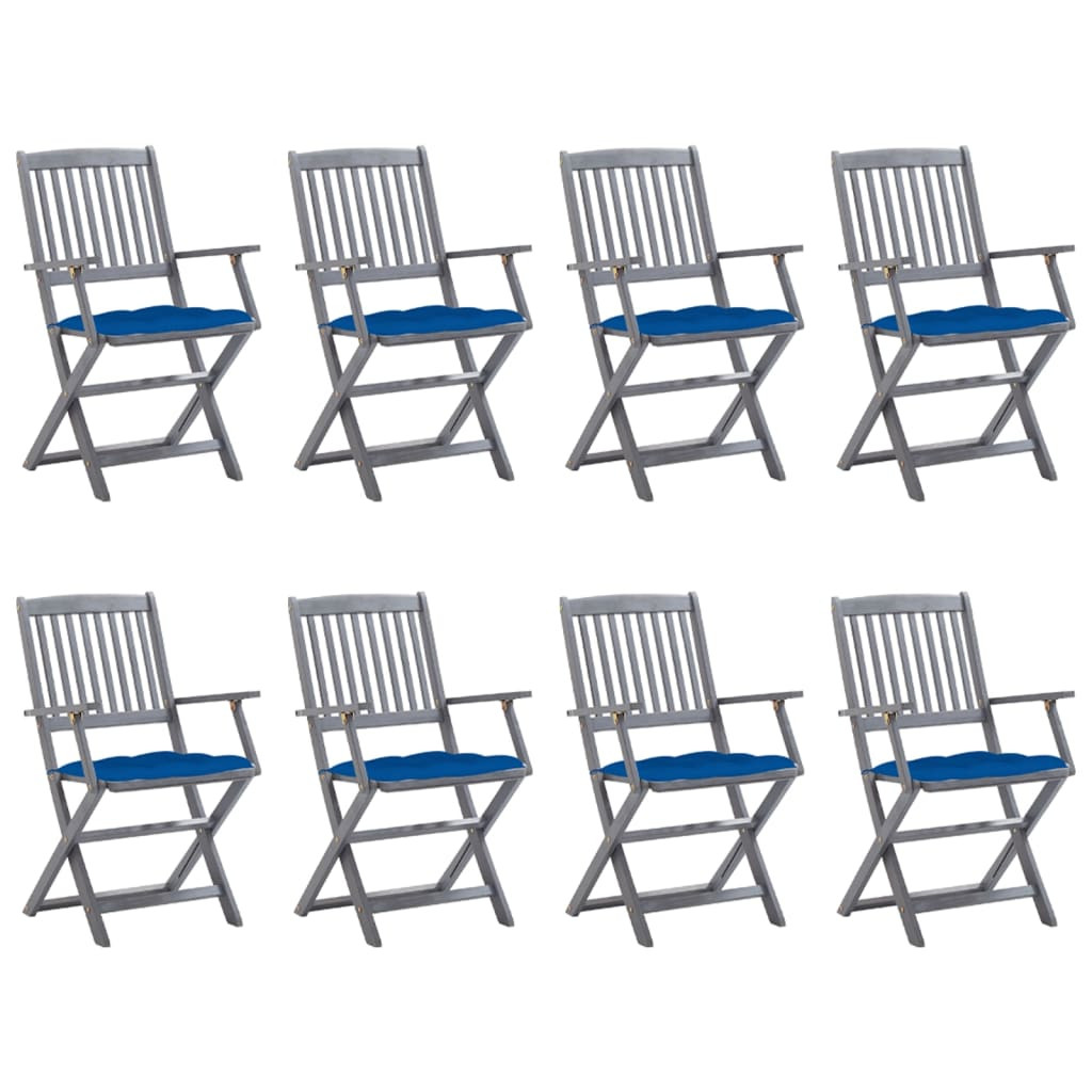 8 db összecsukható tömör akácfa kerti szék párnákkal
