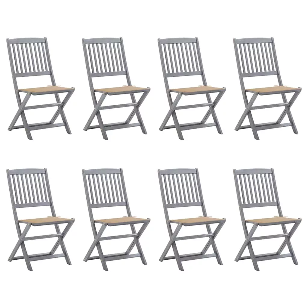 8 db összecsukható tömör akácfa kerti szék párnákkal