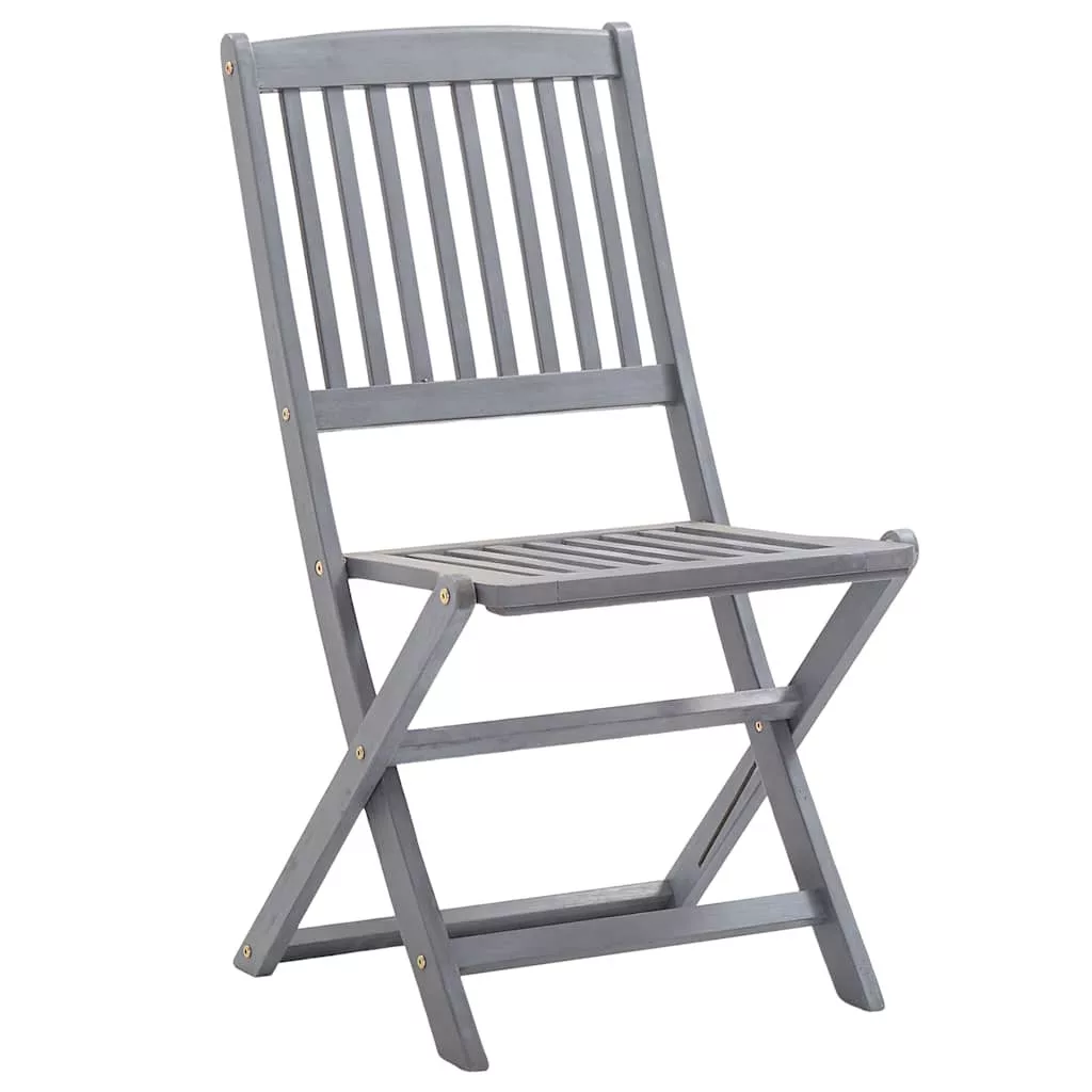 Modern stílusú, párnás fa étkezőszékszettünk természetes stílust csempész a kertjébe, teraszára vagy verandájára. Ez az összecsukható székgarnitúra nagyszerű választás étkezésekhez. Ezek az étkezőszékek tömör akácfából, egy trópusi keményfából készültek, így időjárásállóak és évekig használhatóak. A tömör akácfa nem csupán erős, elbírva a ránehezedő súlyt, de ellenáll a kopásnak is. Az antikolt szürke felület nedves ruhával könnyen tisztítható. A székek a helytakarékosság érdekében használaton kívül összecsukhatóak. A mellékelt párnák további kényelmet nyújtanak pihenés vagy étkezés közben. A párnák mindegyike két fűzővel lett ellátva, amivel a székhez rögzíthetőek. Figyelem: Kültéri bútora élettartamának meghosszabbítása érdekében javasoljuk, hogy tisztítsa rendszeresen, és ne hagyja feleslegesen a szabadban, védelem nélkül.Tisztítás: Használjon enyhe szappanoldatotTárolás: Ha lehetséges, tárolja zárt, hűvös, száraz helyen. Ha a terméket a szabadban tárolja, védje vízálló burkolattal. Eső vagy havazás után törölje le és szárítsa fel a felesleges vizet vagy havat a sík felületekről. Hagyjon elegendő légkeringést a nedvességből eredő károk elkerülése érdekében. Maximum 110 kg ülésenként.