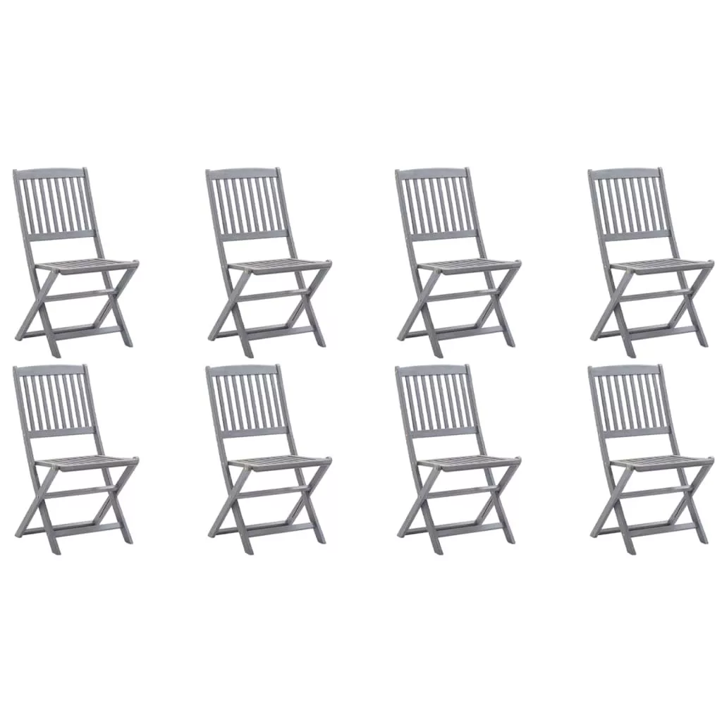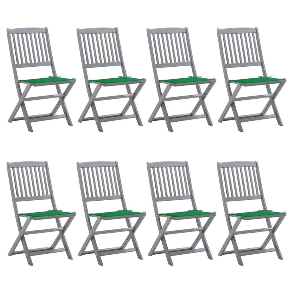8 db összecsukható tömör akácfa kerti szék párnákkal