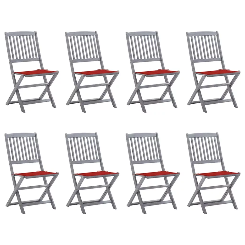 8 db összecsukható tömör akácfa kerti szék párnákkal