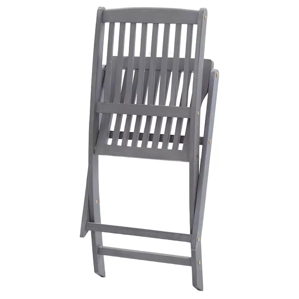 Modern stílusú, párnás fa étkezőszékszettünk természetes stílust csempész a kertjébe, teraszára vagy verandájára. Ez az összecsukható székgarnitúra nagyszerű választás étkezésekhez. Ezek az étkezőszékek tömör akácfából, egy trópusi keményfából készültek, így időjárásállóak és évekig használhatóak. A tömör akácfa nem csupán erős, elbírva a ránehezedő súlyt, de ellenáll a kopásnak is. Az antikolt szürke felület nedves ruhával könnyen tisztítható. A székek a helytakarékosság érdekében használaton kívül összecsukhatóak. A mellékelt párnák további kényelmet nyújtanak pihenés vagy étkezés közben. A párnák mindegyike két fűzővel lett ellátva, amivel a székhez rögzíthetőek. Figyelem: Kültéri bútora élettartamának meghosszabbítása érdekében javasoljuk, hogy tisztítsa rendszeresen, és ne hagyja feleslegesen a szabadban, védelem nélkül.Tisztítás: Használjon enyhe szappanoldatotTárolás: Ha lehetséges, tárolja zárt, hűvös, száraz helyen. Ha a terméket a szabadban tárolja, védje vízálló burkolattal. Eső vagy havazás után törölje le és szárítsa fel a felesleges vizet vagy havat a sík felületekről. Hagyjon elegendő légkeringést a nedvességből eredő károk elkerülése érdekében. Maximum 110 kg ülésenként.