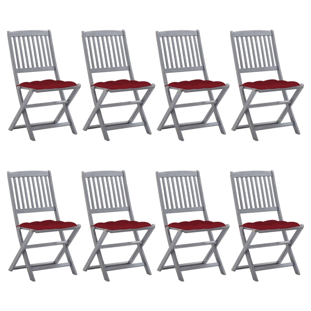 8 db összecsukható tömör akácfa kerti szék párnákkal