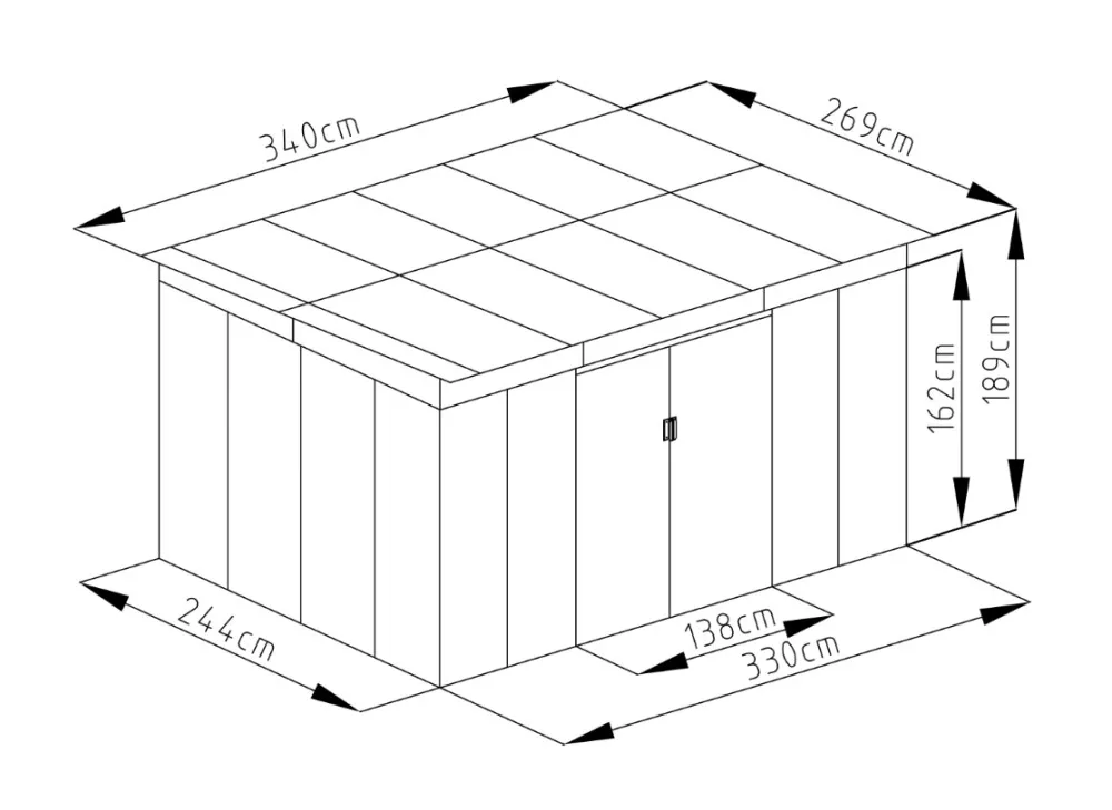 A kerti tároló kétszárnyas ajtóval van ellátva. A bejárat így igazán kényelmes akkor is, ha nagyobb tárgyat visz be vagy ki.