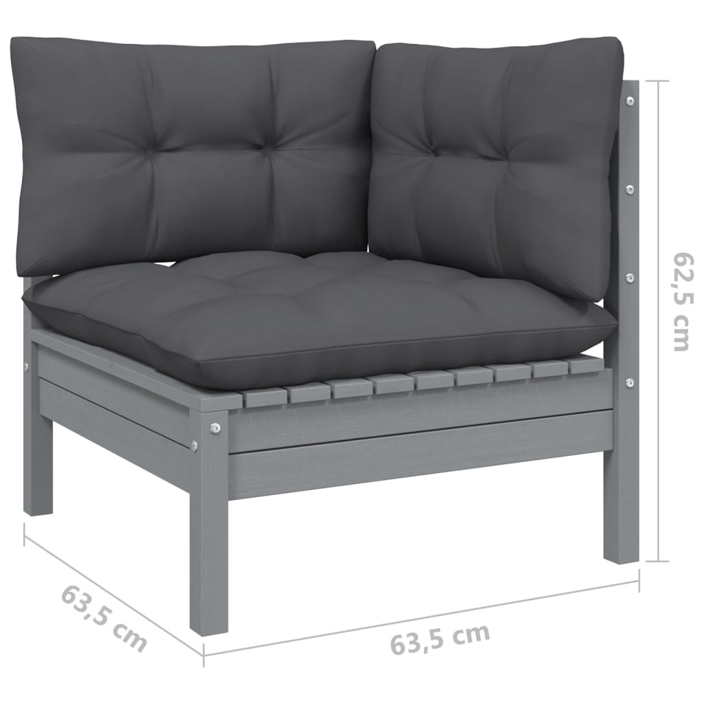 2 személyes tömör fenyőfa kerti kanapé antracitszürke párnákkal