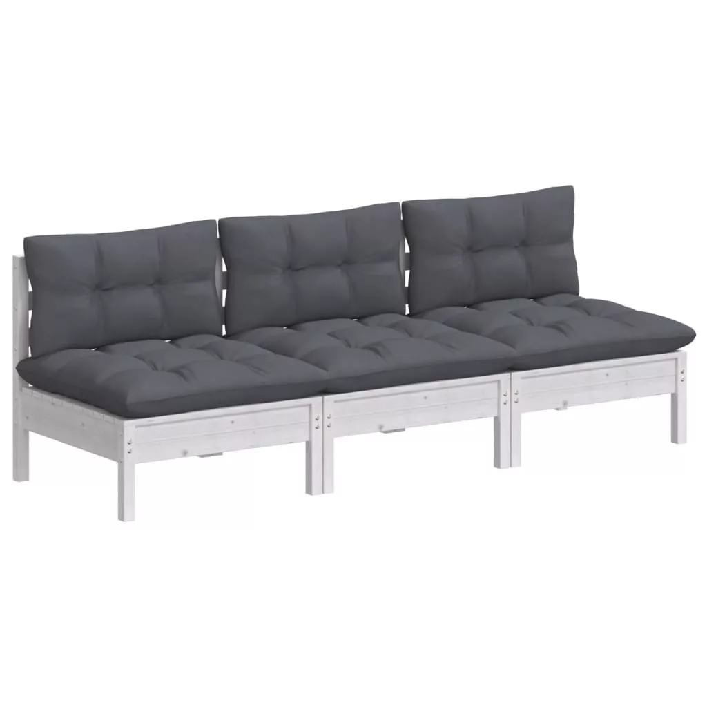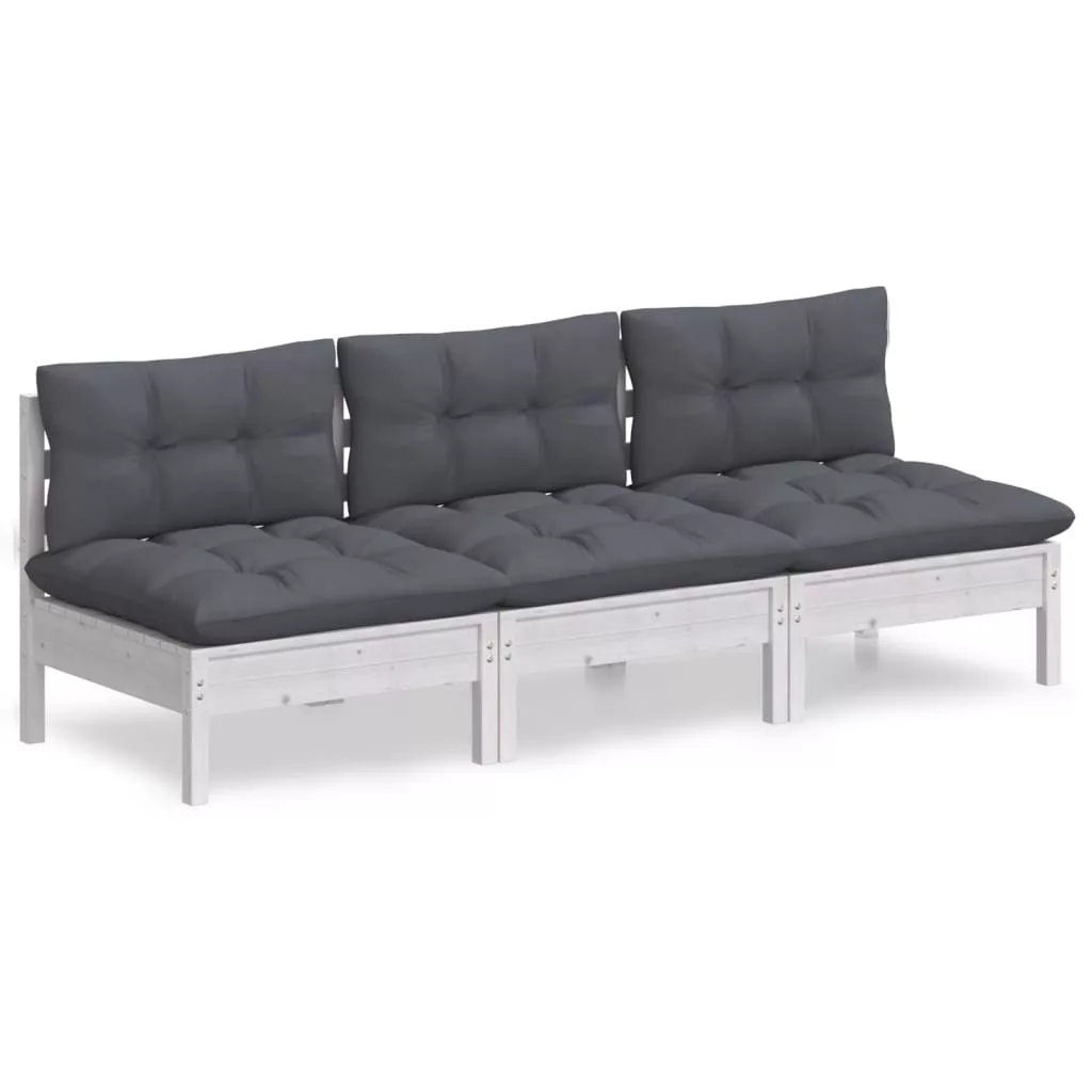 3 személyes tömör fenyőfa kerti kanapé antracitszürke párnákkal