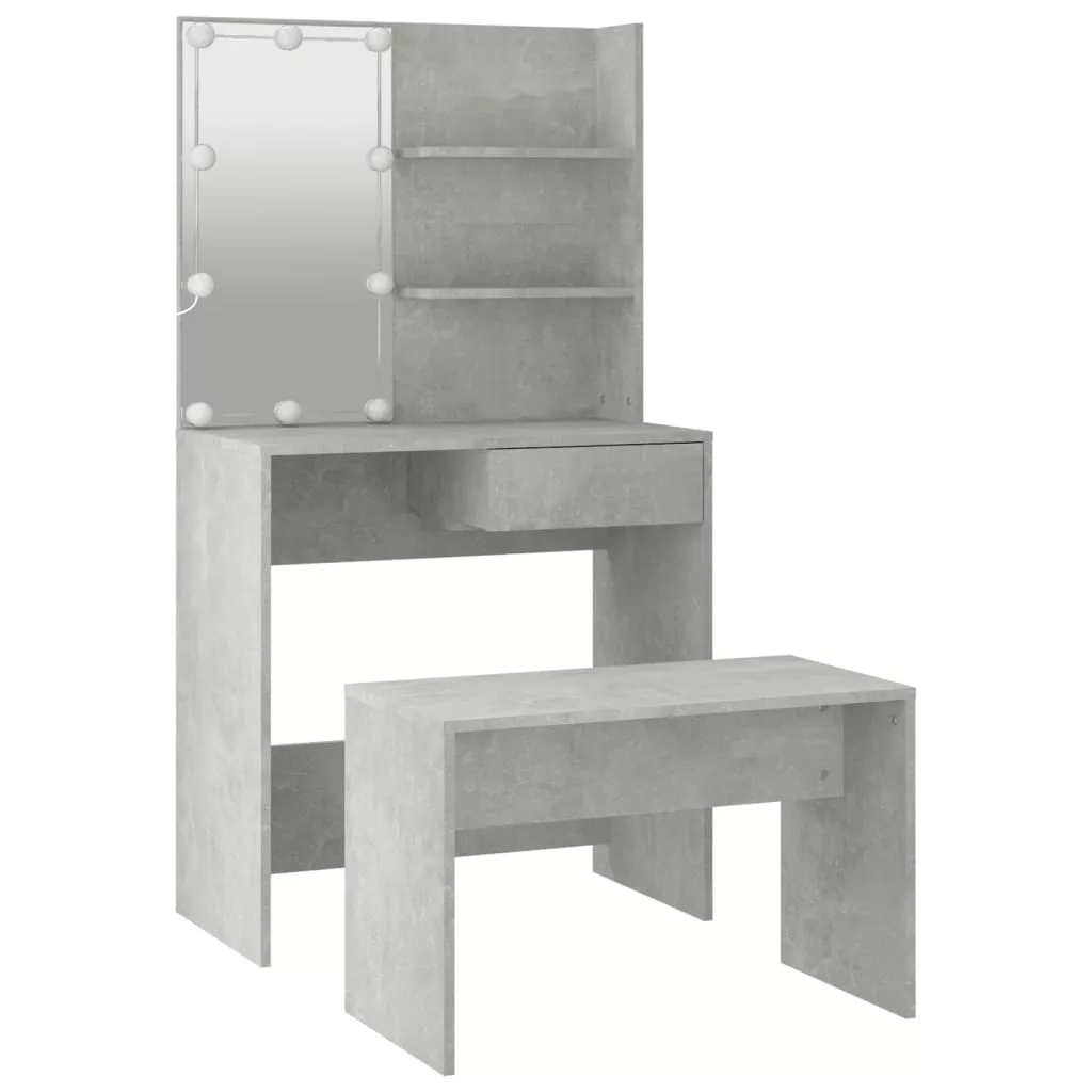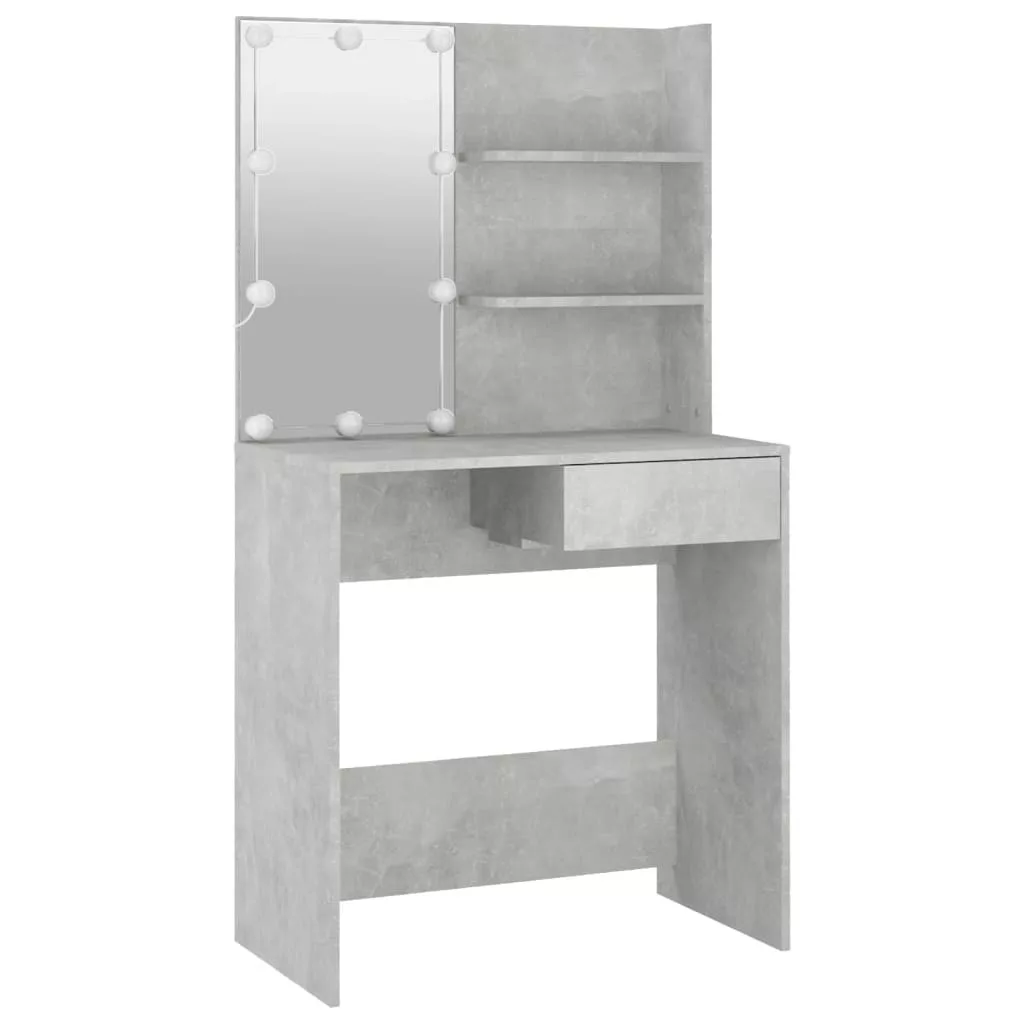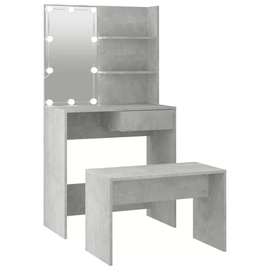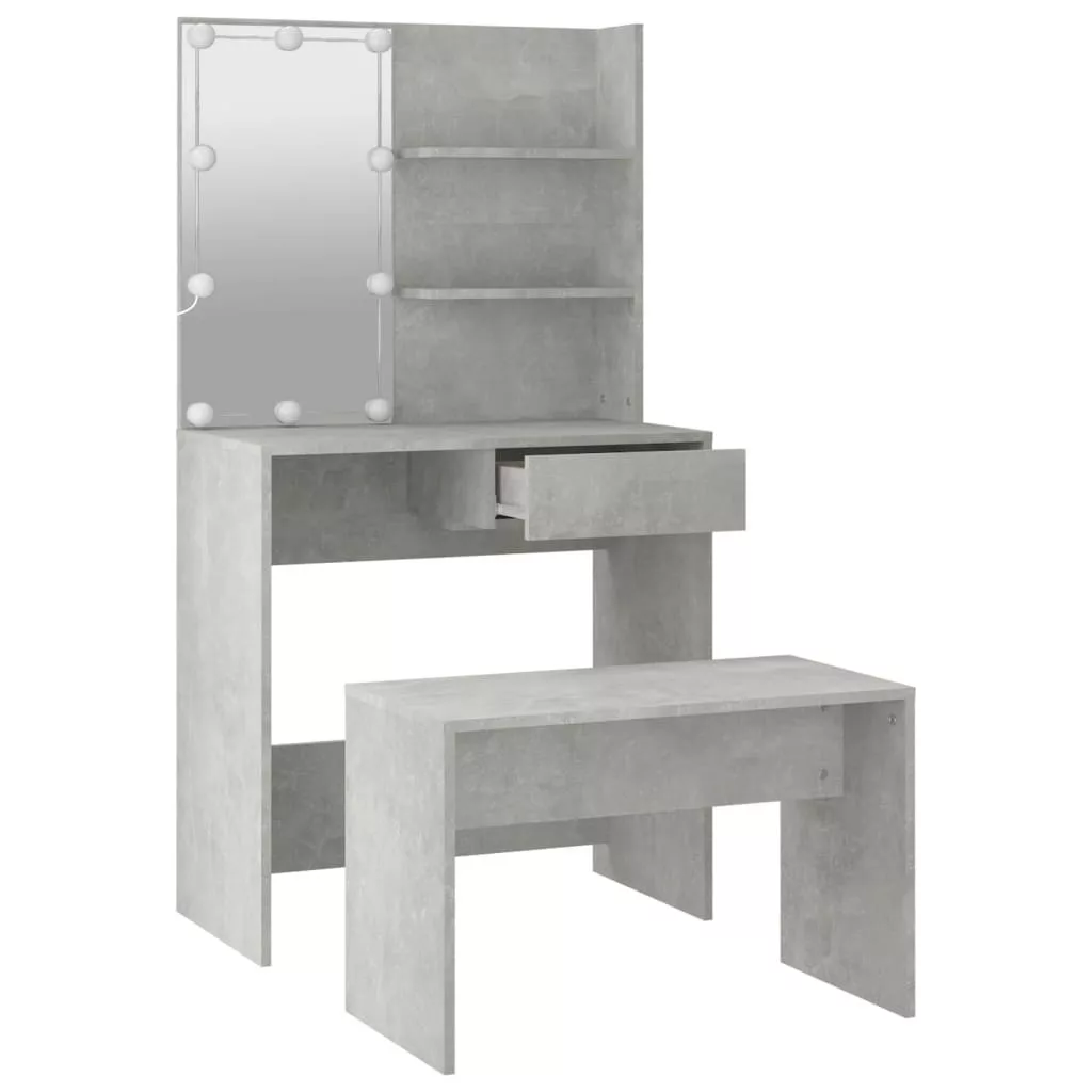 betonszürke szerelt fa fésülködőasztal-szett LED-ekkel