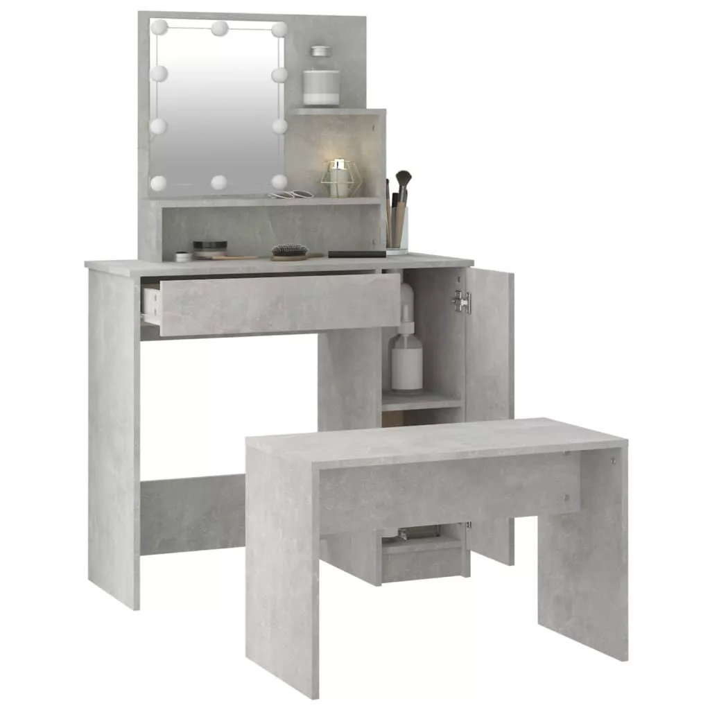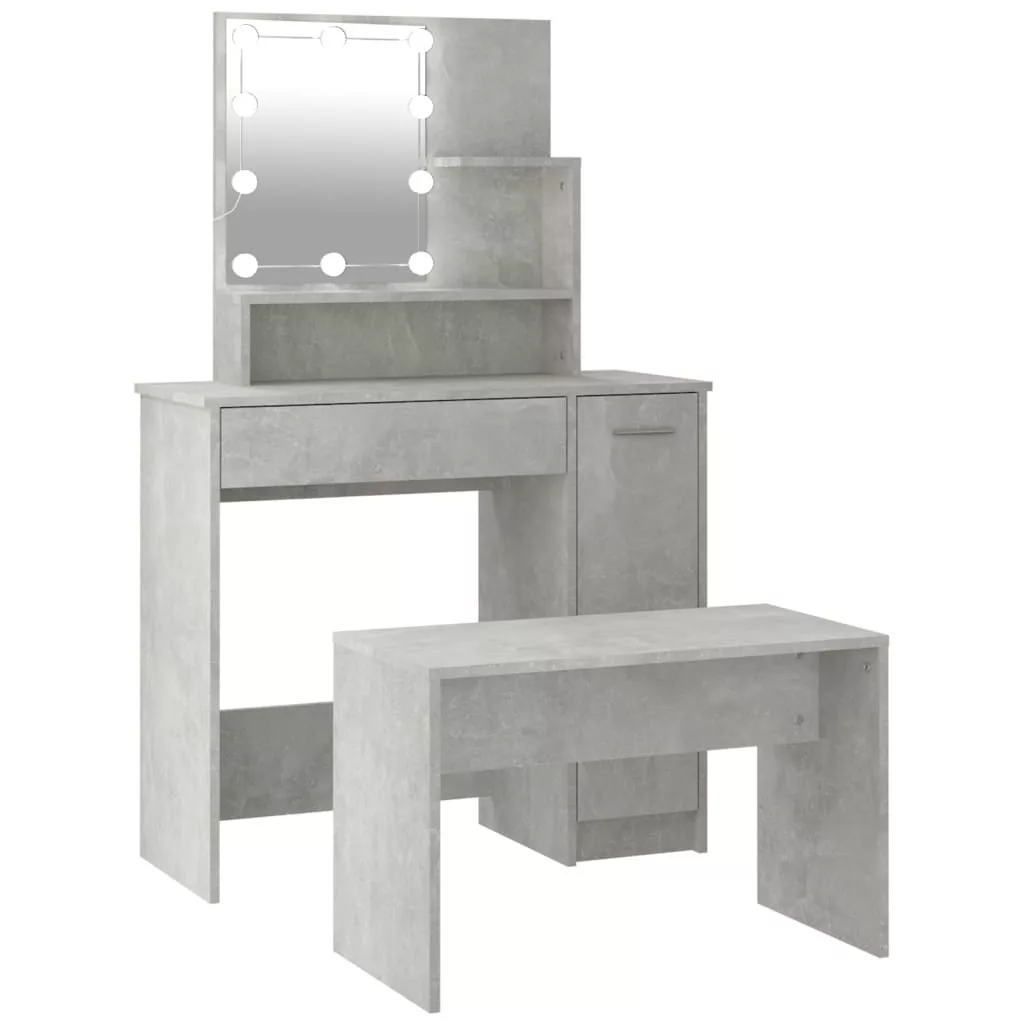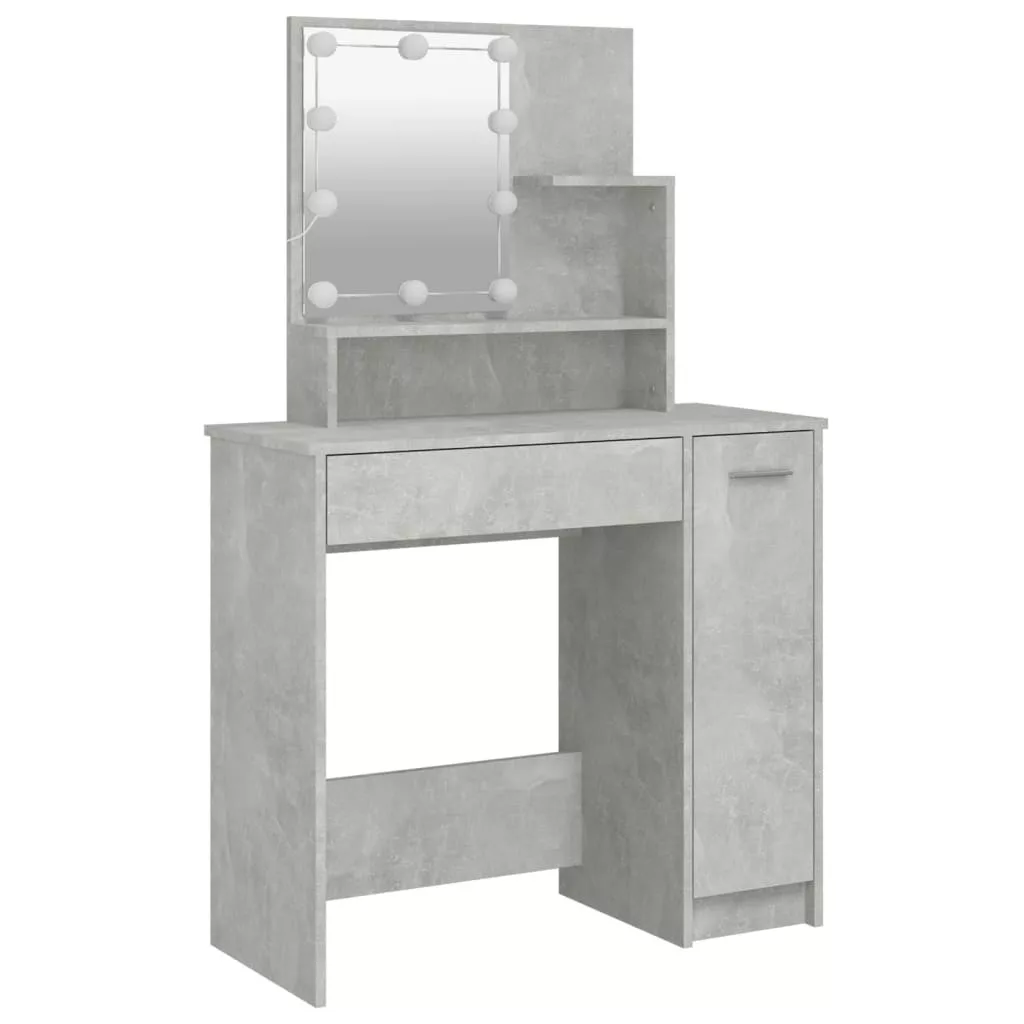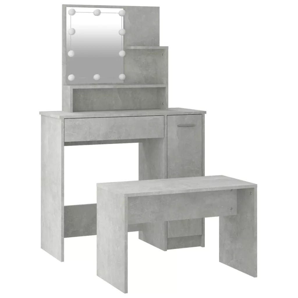 betonszürke szerelt fa fésülködőasztal-szett LED-ekkel