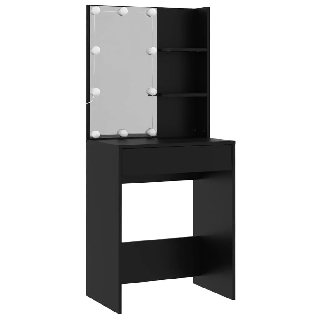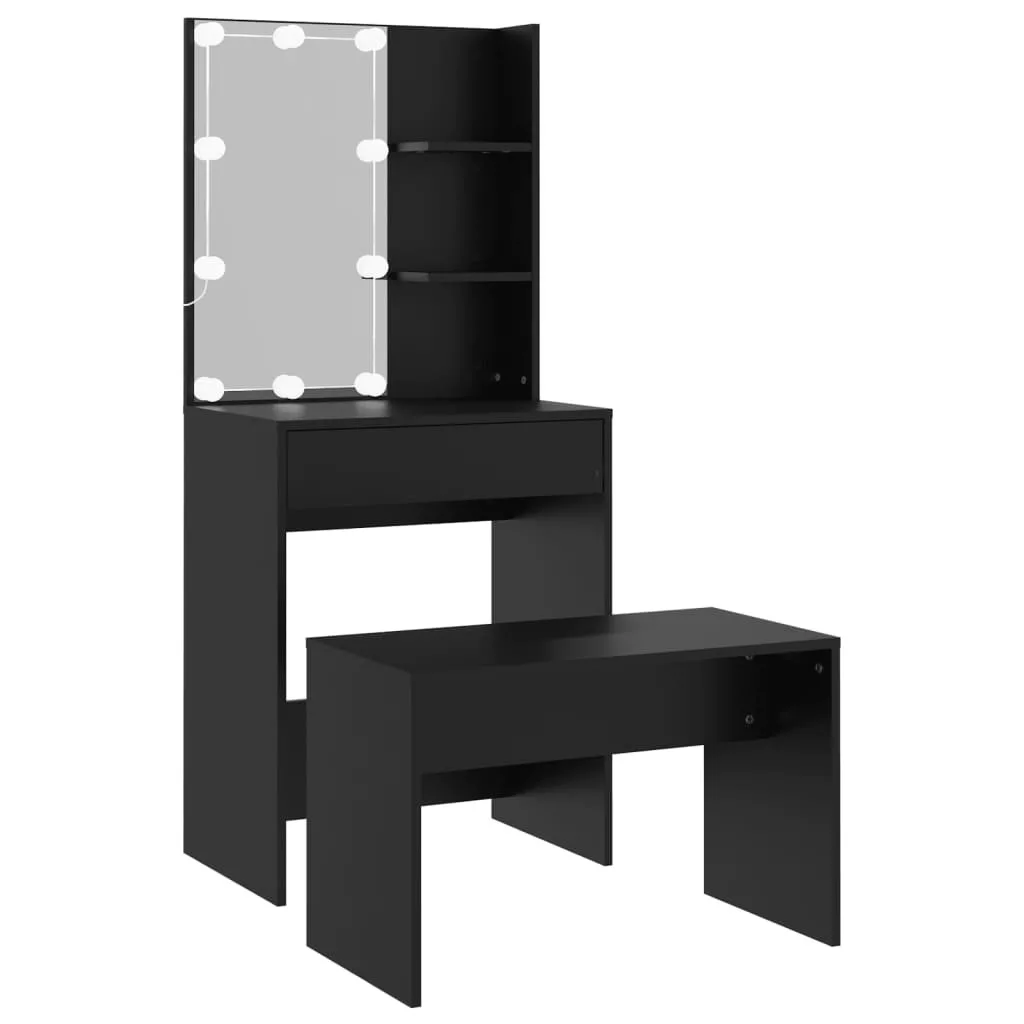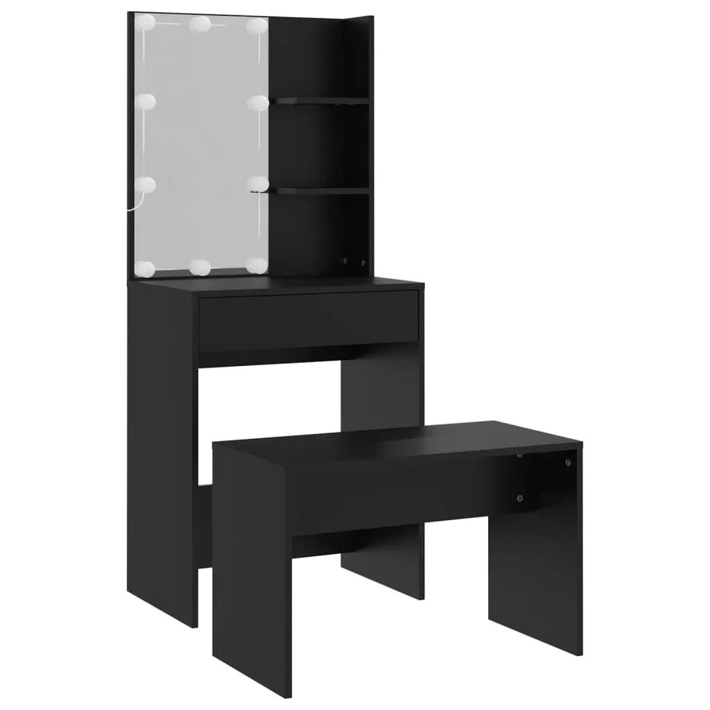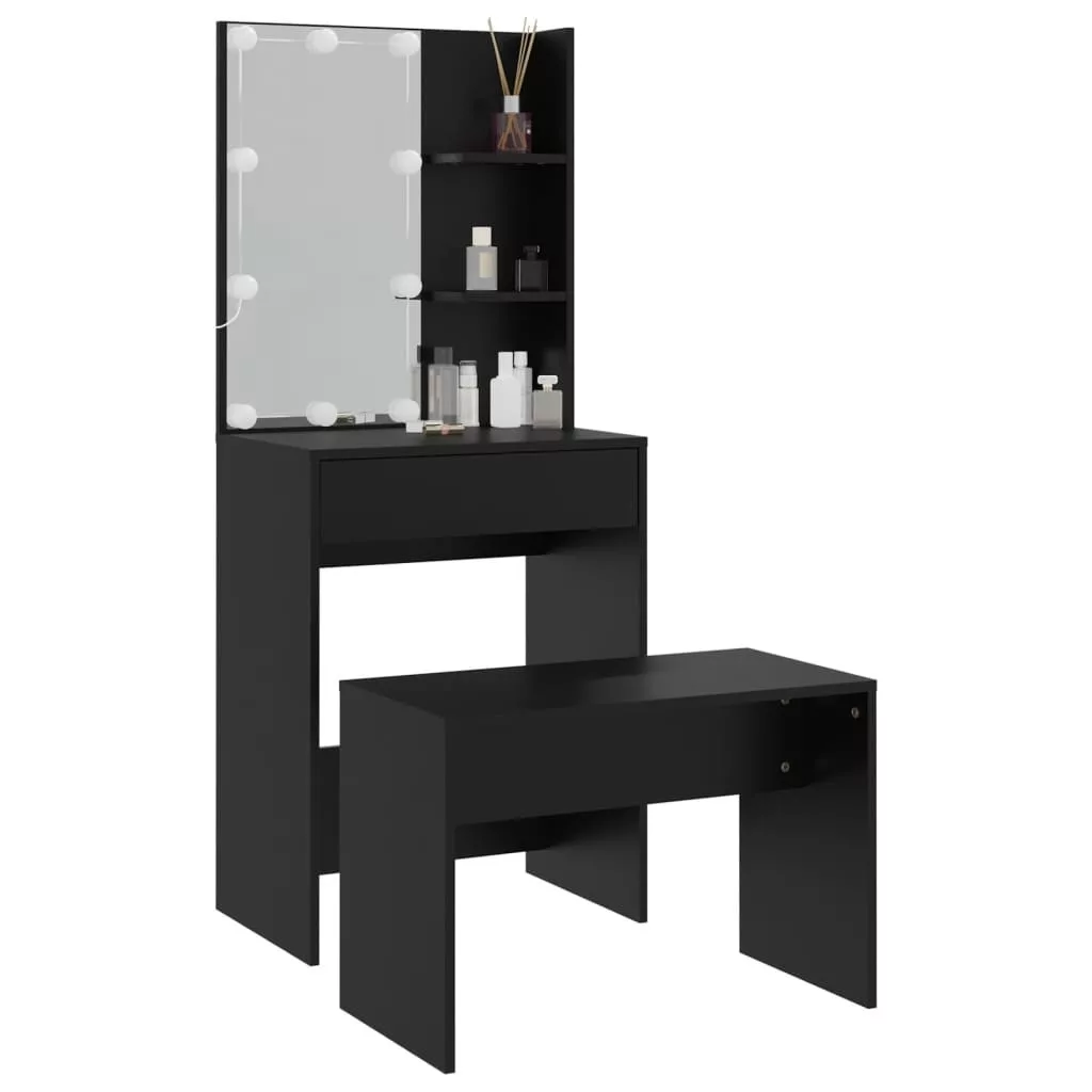 fekete szerelt fa fésülködőasztal szett LED-del