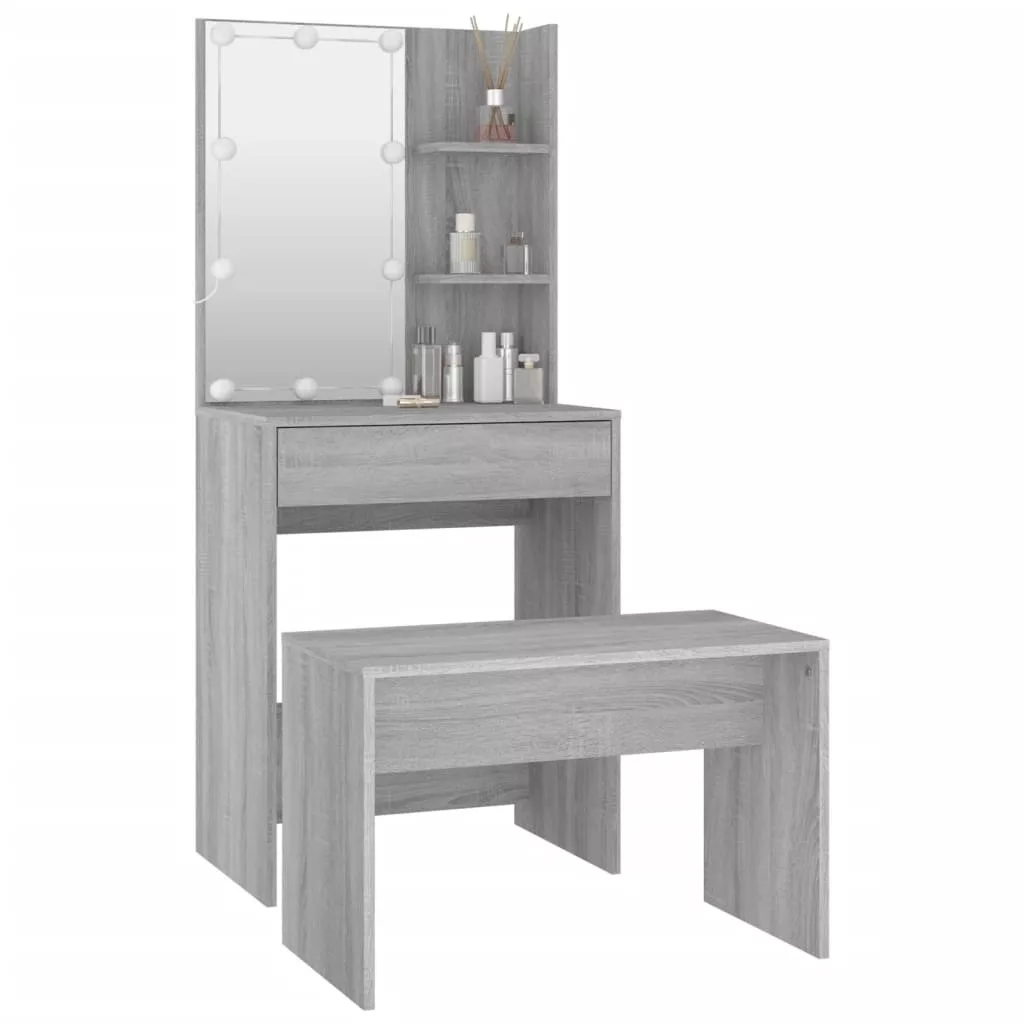 szürke sonoma szerelt fa fésülködőasztal-szett LED-ekkel