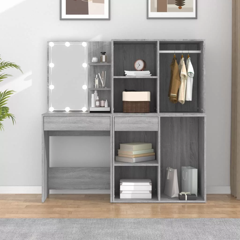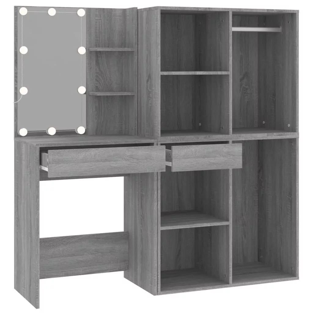 szürke sonoma színű szerelt fa LED-es pipereasztal szekrénnyel