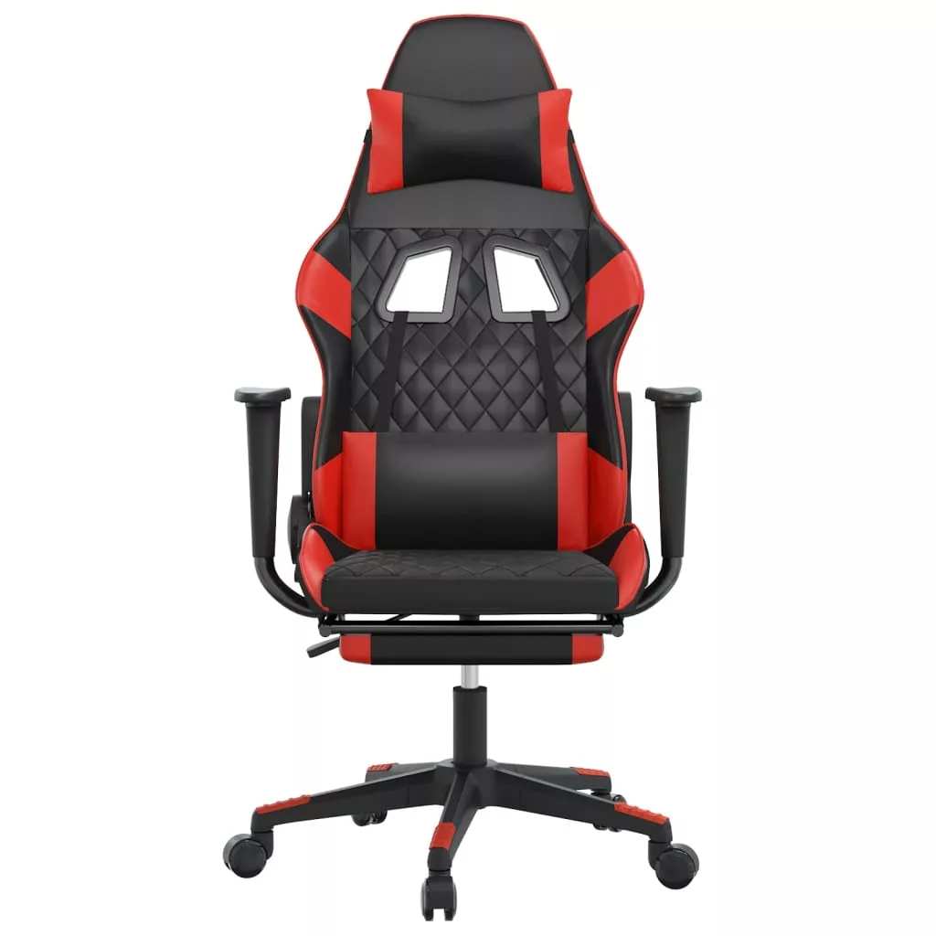 fekete és piros műbőr masszázsjátékszék lábtartóval