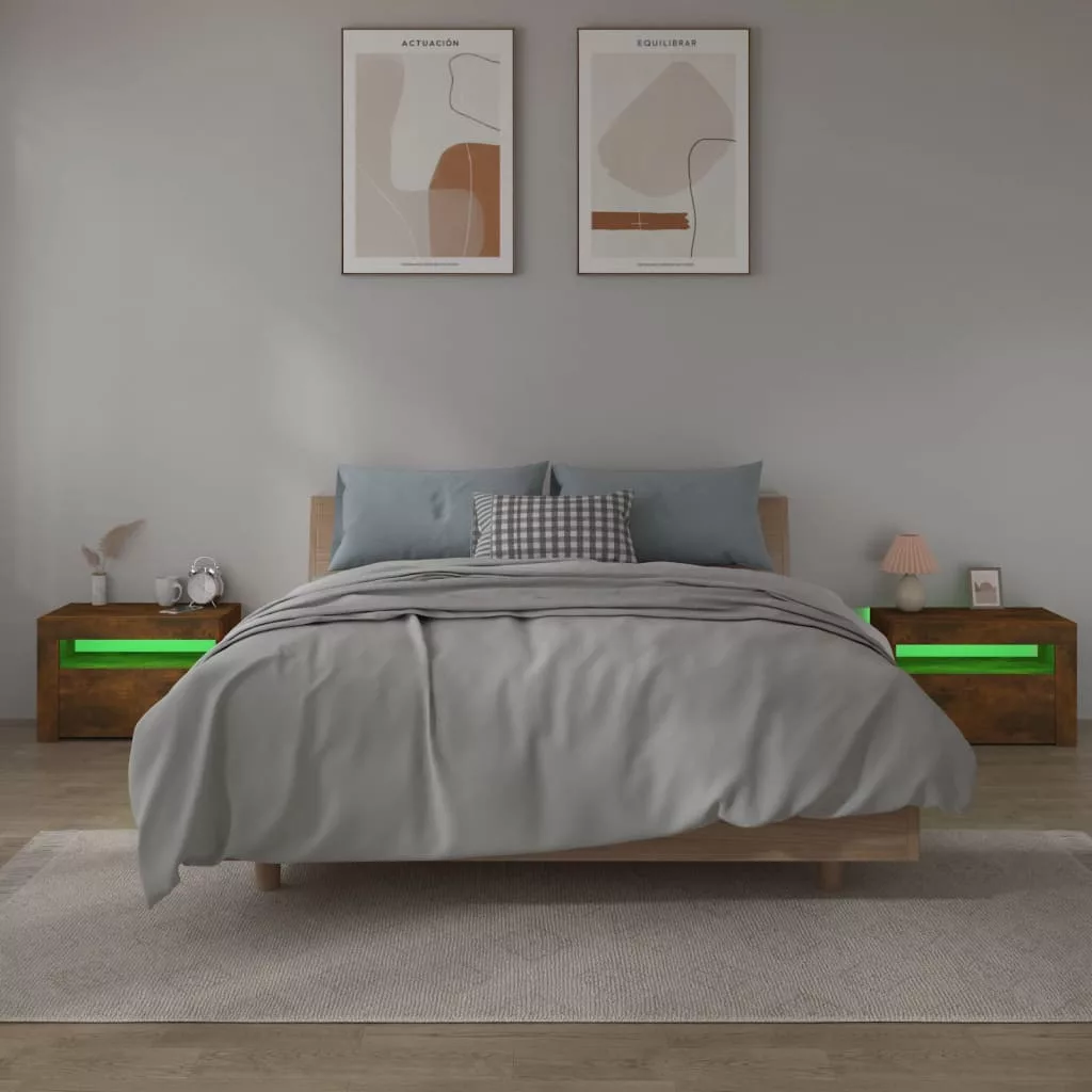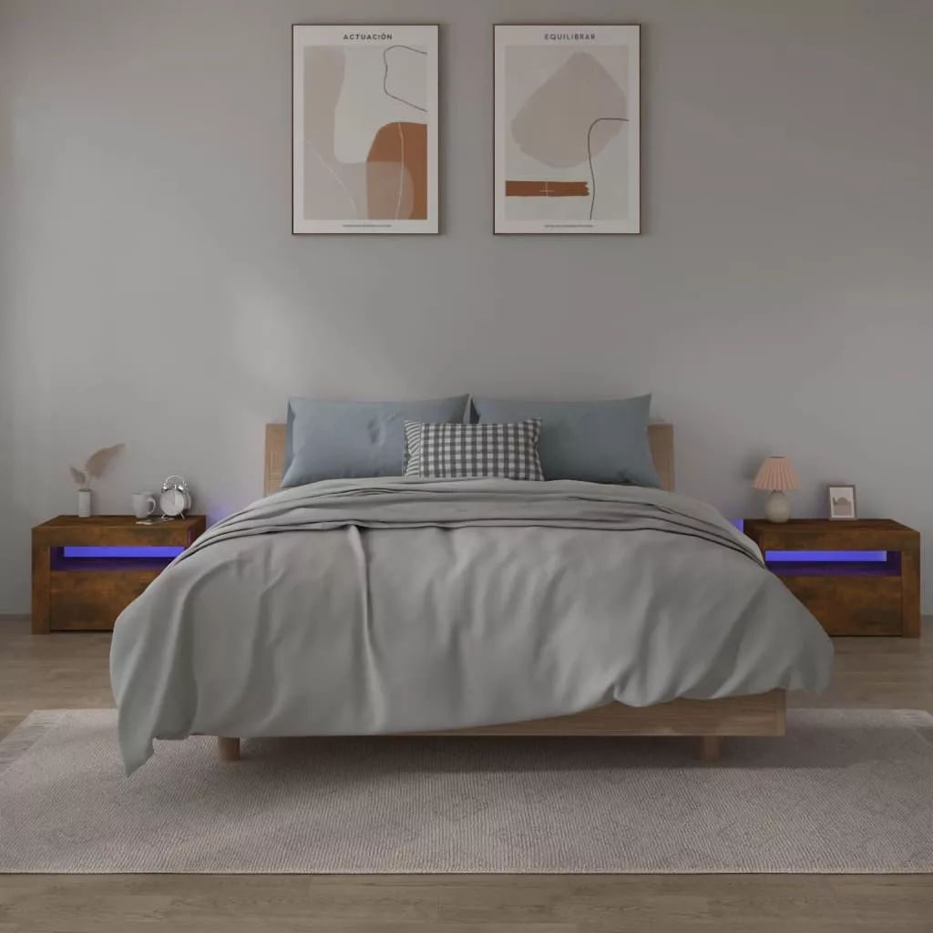 2 db füstös tölgy színű éjjeliszekrény LED-ekkel 60x35x40 cm