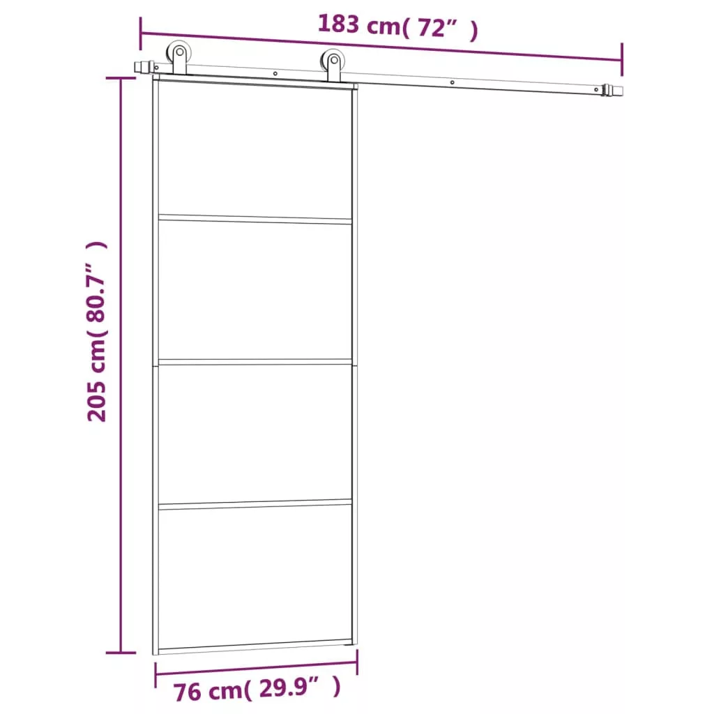 ESG üveg és alumínium tolóajtó fémszerelvény-szettel 76x205 cm