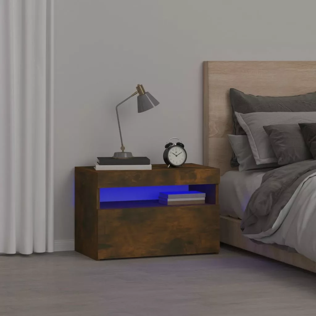 füstös tölgy színű éjjeliszekrény LED világítással 60x35x40 cm