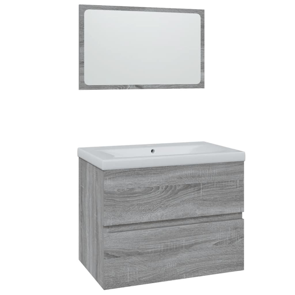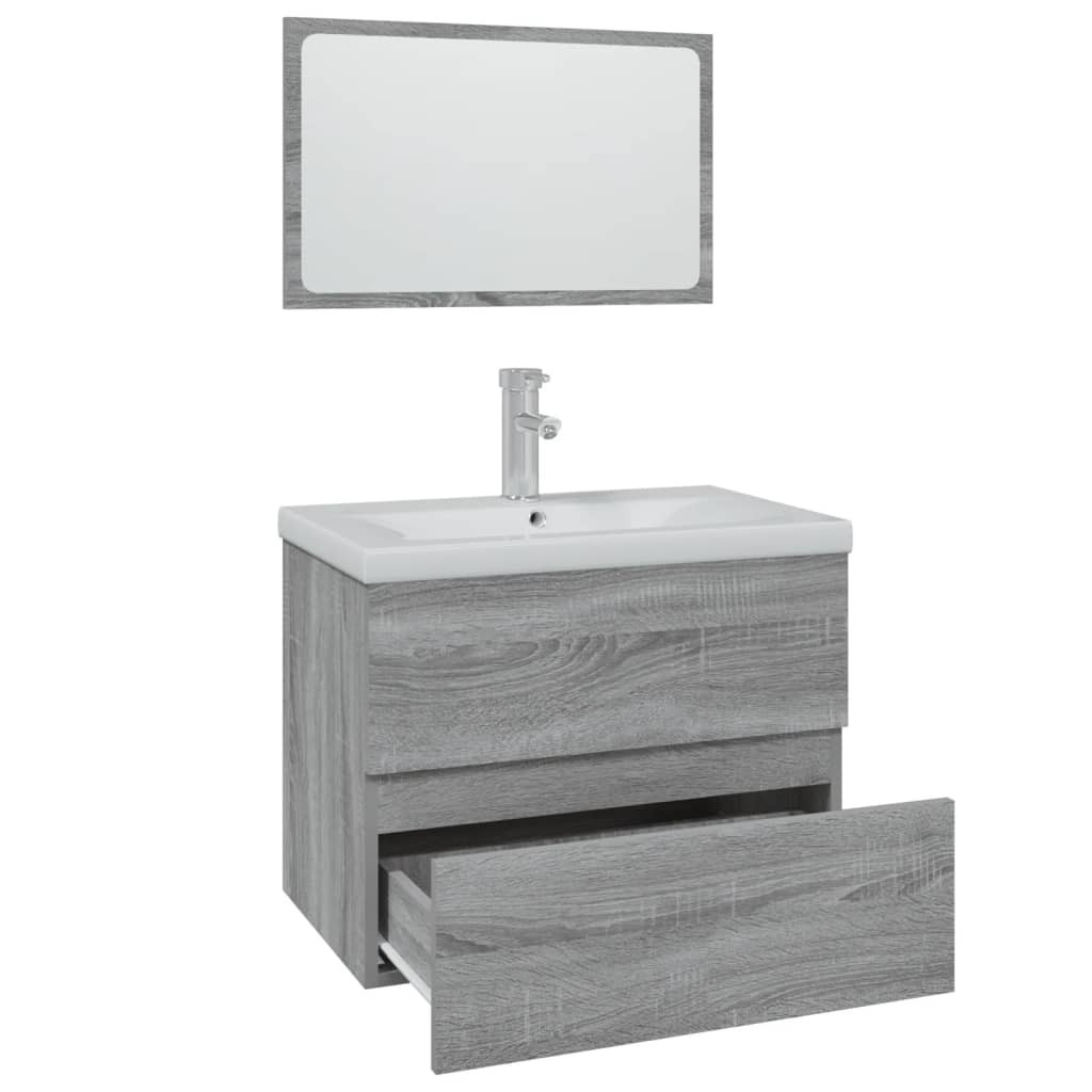 szürke sonoma színű szerelt fa fürdőszobai bútorszett