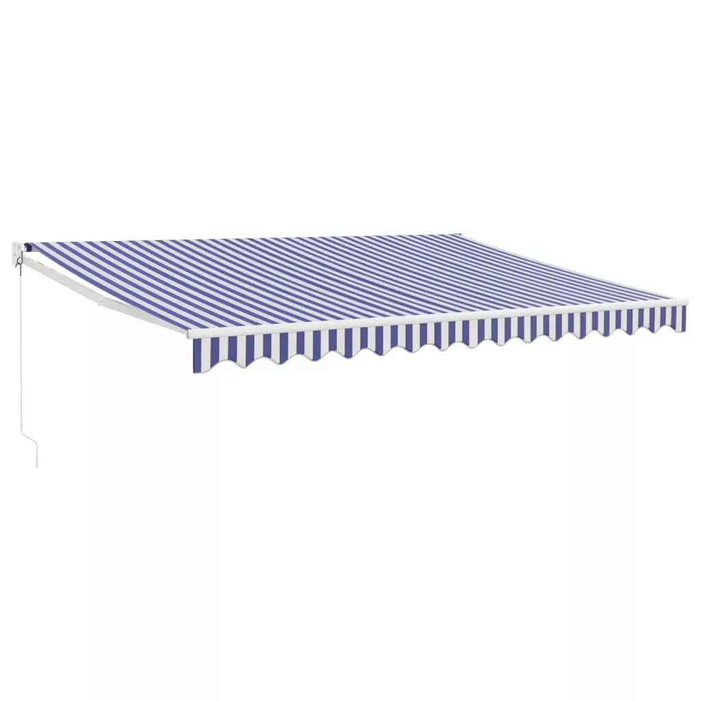 kék és fehér szövet és alumínium behúzható napellenző 4 x 3 m