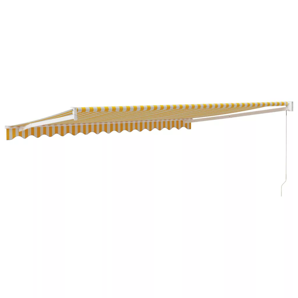 sárga-fehér szövet és alumínium behúzható napellenző 4,5 x 3 m