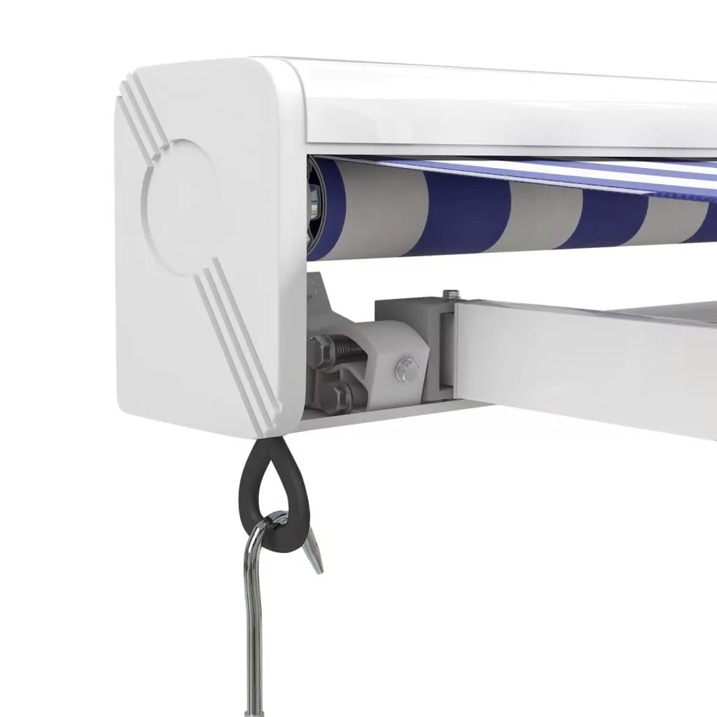 kék és fehér szövet és alumínium behúzható napellenző 4 x 3 m