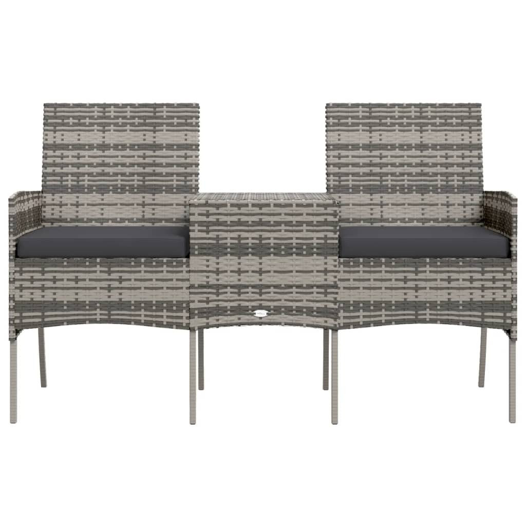kétszemélyes antracitszürke polyrattan kanapé teázóasztallal