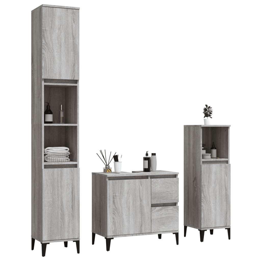 3 részes szürke sonoma szerelt fa fürdőszoba szekrényszett