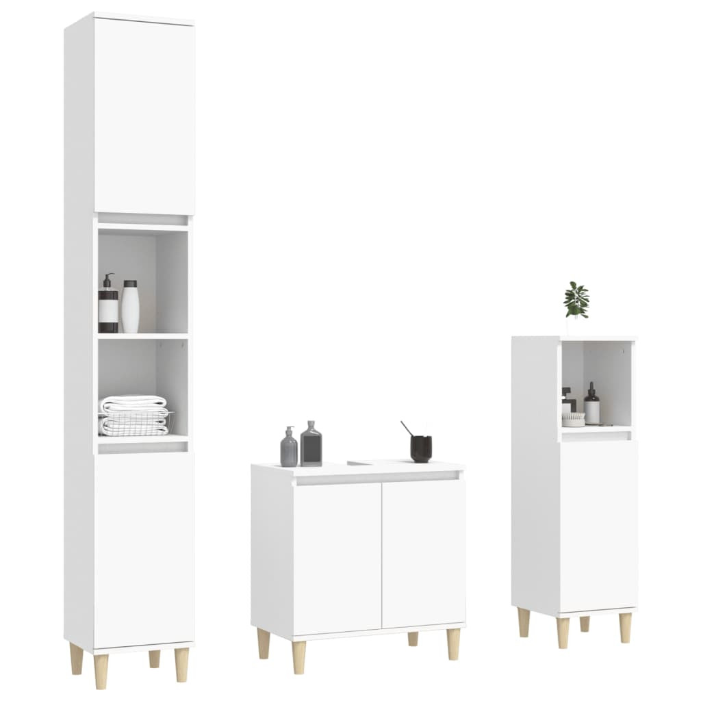3 részes fehér szerelt fa fürdőszobai bútorszett