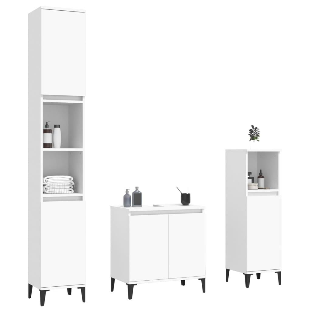 3 részes fehér szerelt fa fürdőszobai bútorszett