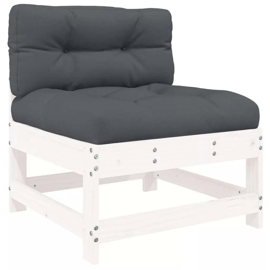 7 részes fehér tömör fa kerti ülőgarnitúra párnával