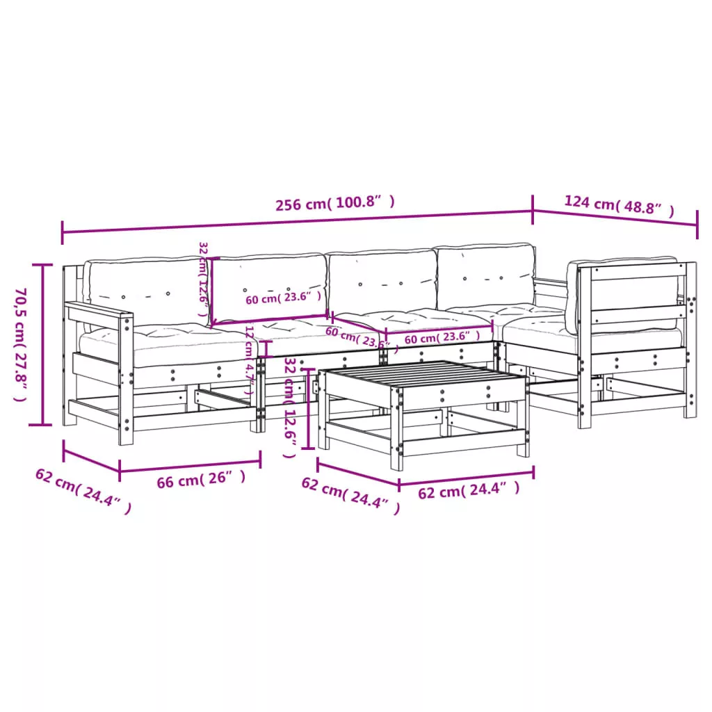 6 részes fehér tömör fa kerti társalgószett párnákkal