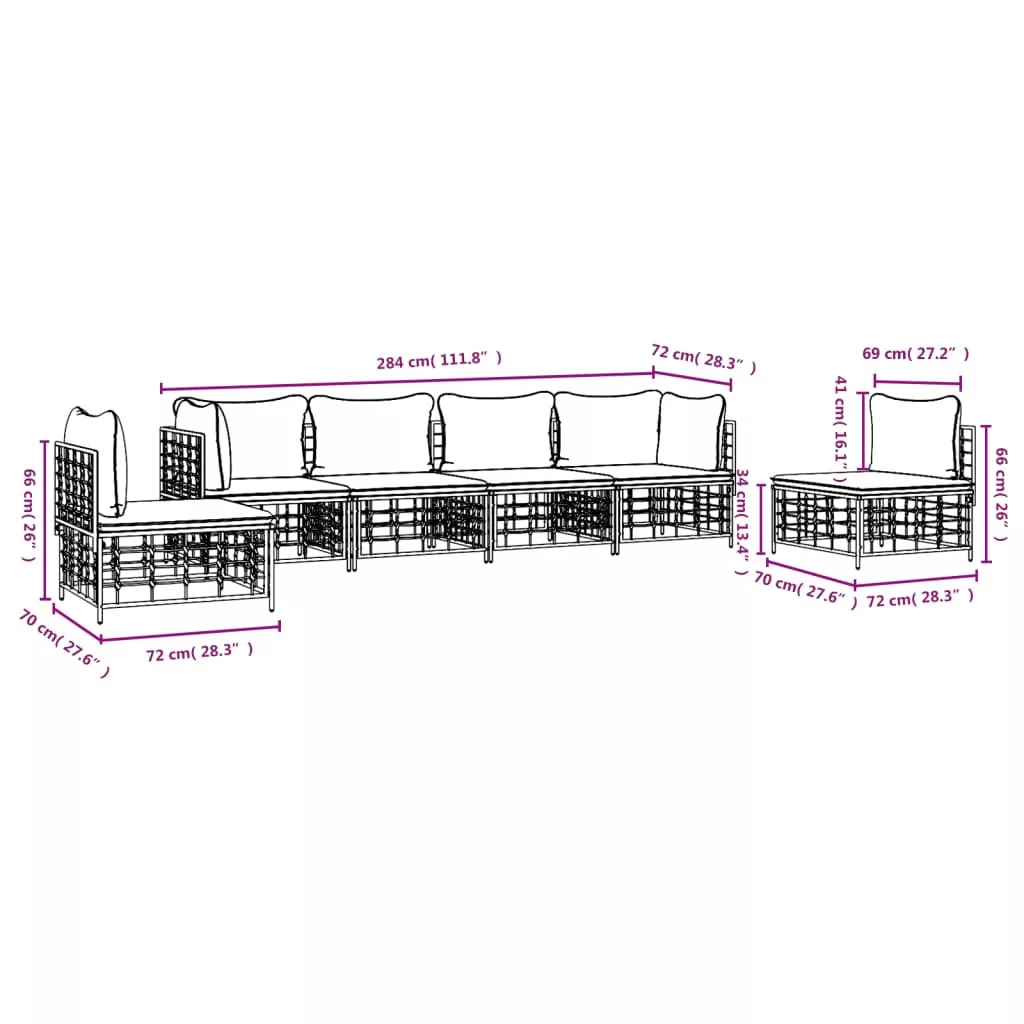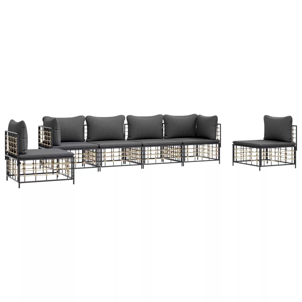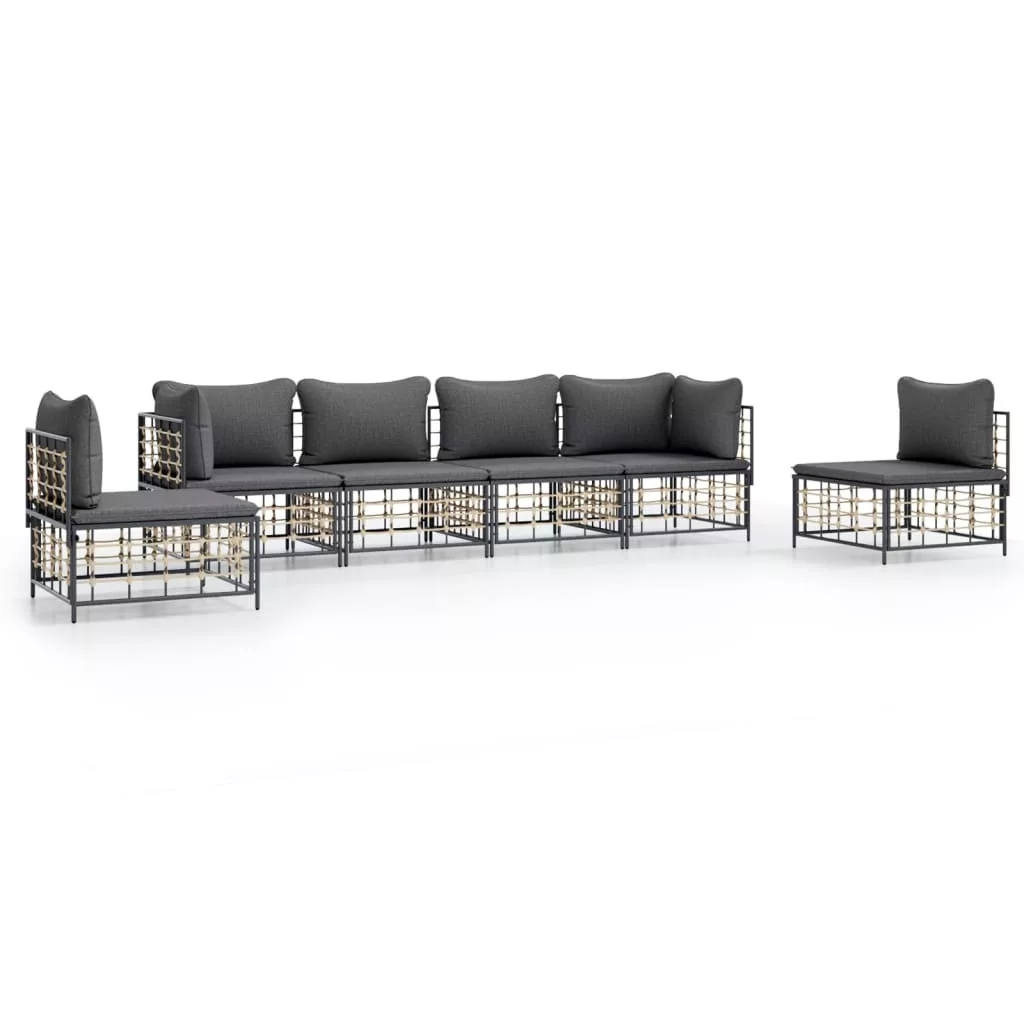 6 részes antracitszürke polyrattan kerti ülőgarnitúra párnákkal