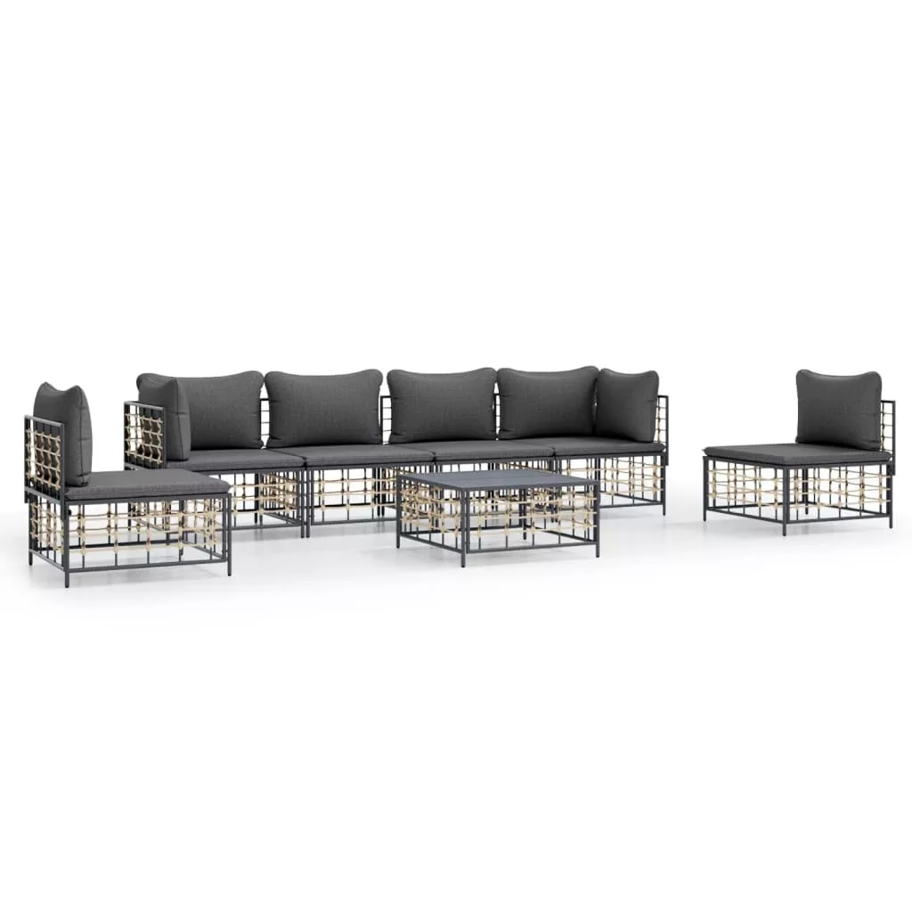7 részes antracitszürke polyrattan kerti ülőgarnitúra párnákkal