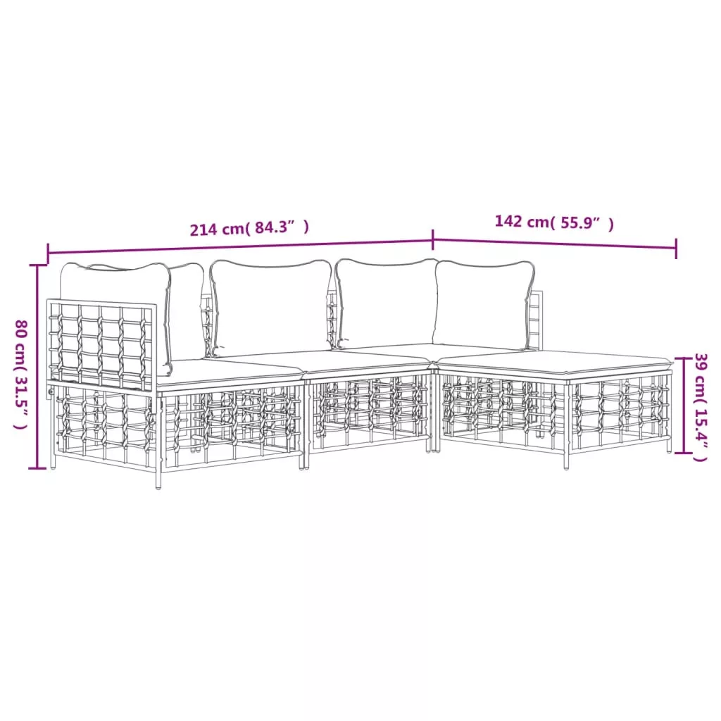 4 részes antracitszürke polyrattan kerti ülőgarnitúra párnákkal