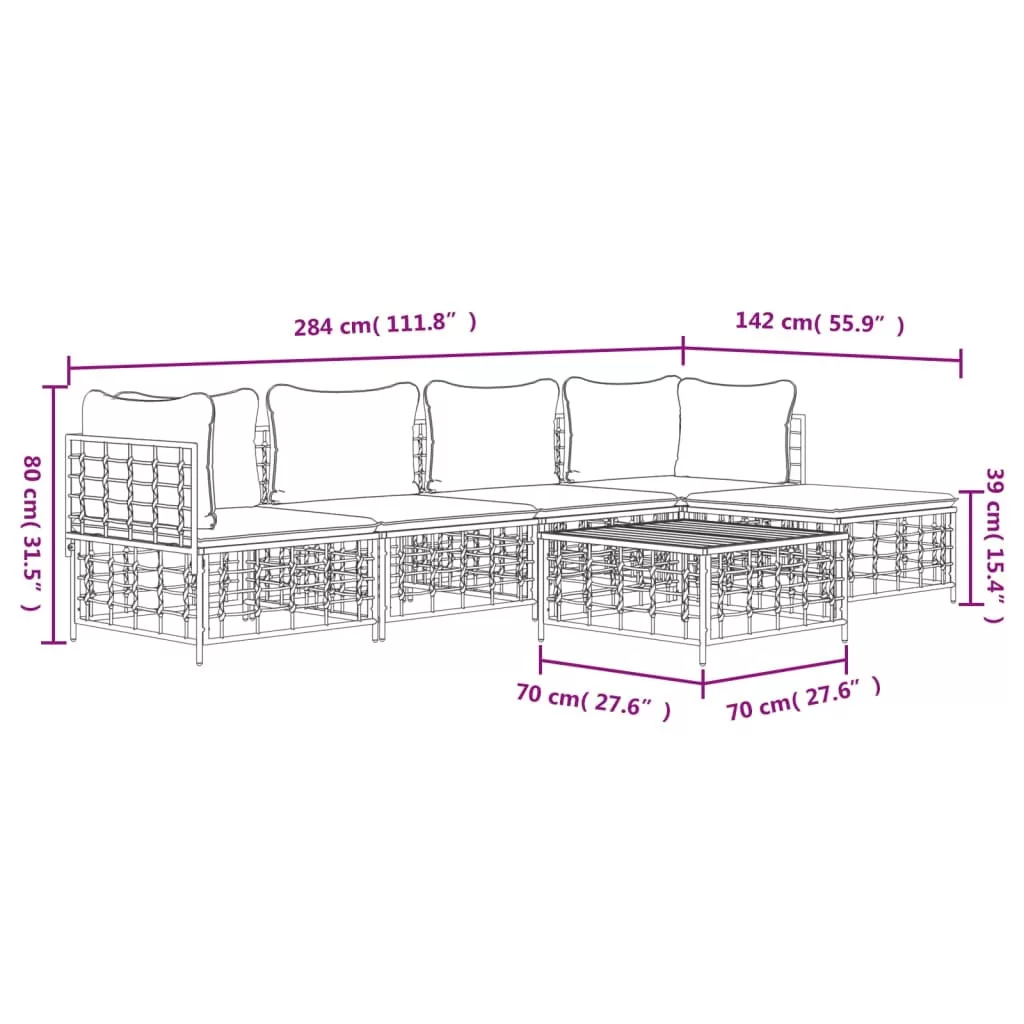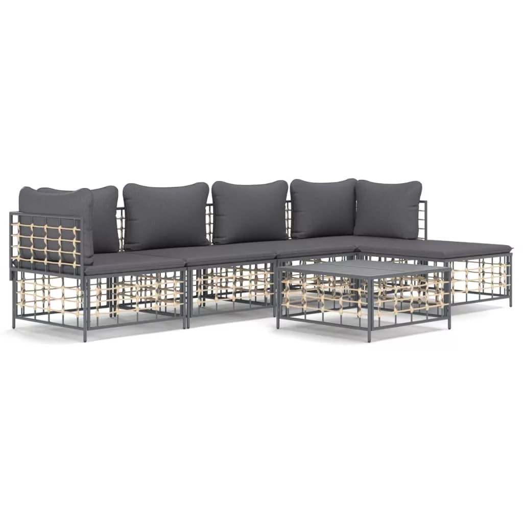 6 részes antracitszürke polyrattan kerti ülőgarnitúra párnákkal